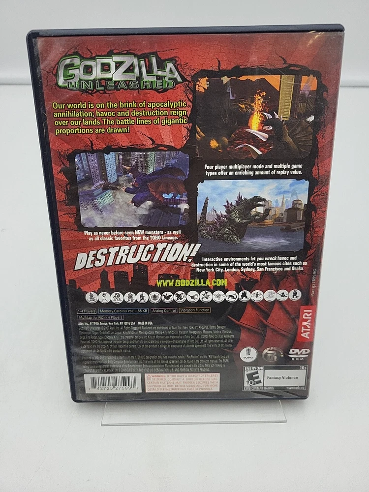 Godzilla: Unleashed for Sony PlayStation 2, released in 2007, is a thrilling action-packed game that will take you on a wild ride. In this game, you get to take control of your favorite monster and wreak havoc on cities around the world. With stunning graphics and intense gameplay, this game is sure to keep you entertained for hours on end. This copy is complete in box and has been tested, ensuring that it will work perfectly when you receive it. Don't miss out on the chance to add this exciting game to your collection.