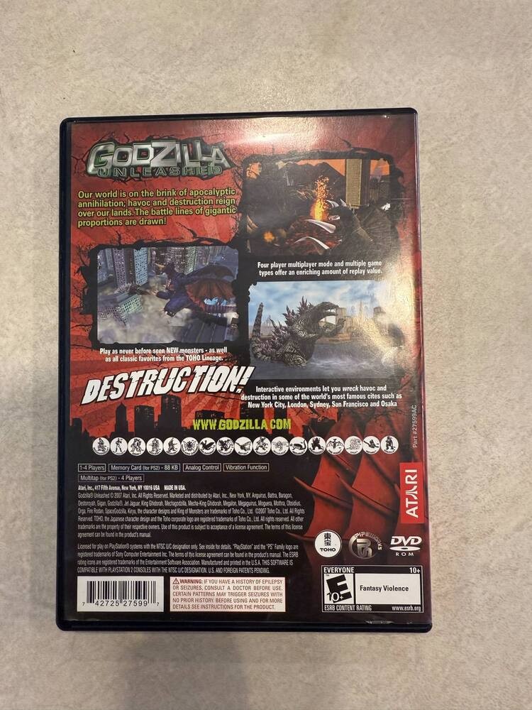 Godzilla: Unleashed (Sony PlayStation 2, 2007) PS2 CIB SPB-TS 309013 Please see all detailed photos for condition. Please see ALL the pictures and description for what is included. If you have any questions or concerns please email me a question before bidding on the item, Terms and Conditions We pride ourselves on providing the best possible customer service possible. Should any issue arise please contact us and we will do our best to ensure a speedy and satisfactory response. Our current office hours are Monday through Friday 10am to 7pm EST. Inquiries made outside of these hours will be answered as soon as possible. PAYMENTS · Payments must be made through Paypal. · Payment must be received within 7 days of the auction's end. · Items left unpaid for more than 7 days are eligible to be relisted and/or have an unpaid item claim filed. SHIPPING · Please be aware of our shipping charges prior to placing a bid. Items are typically shipped within One business day of receipt of payment. You will be notified when your item has been shipped. We are not responsible for shipping and/or delivery delays resulting from factors outside of our control, including acts of nature, strikes, etc. RETURNS • Returns are accepted within 14 days of arrival, except for items offered As-Is or For Parts/Repair/Not Working • Return shipping is the responsibility of the customer, unless the item arrives in a condition significantly different than described in the listing. • Items offered for sale in As-Is or in For Parts/Repair/Not Working condition are final sale only. GENERAL · We endeavor to provide accurate descriptions of all items. If you feel that an item was received in a condition other than as described, please contact us so that we may assist you. · We Thank you for shopping with us and hope you enjoy your product, Pictures are of actual items, you are bidding on what's pictured. Ebay Product Descriptions may not always reflect what you get in the auction. Please look at our description and photos. Thank You :) Please allow up to 24 hours for response to questions. We do not ship or answer questions on the weekend. Anything paid after 10am (EST) will be shipped the next day, Friday after 10am (EST) will go out Monday.
