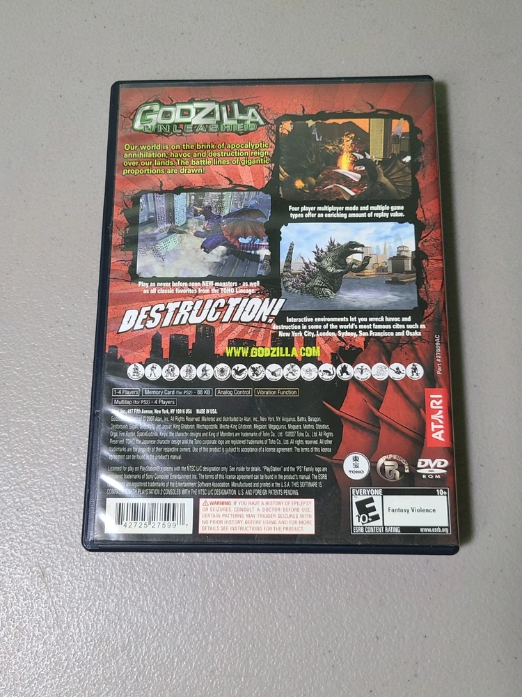 This PS2 classic delivers epic monster battles just like you remember! Despite some wear on the manual and case insert, the game itself works perfectly—ready to smash cities and battle giant creatures right out of the box. A must-have for Godzilla fans looking for chaotic fun!
