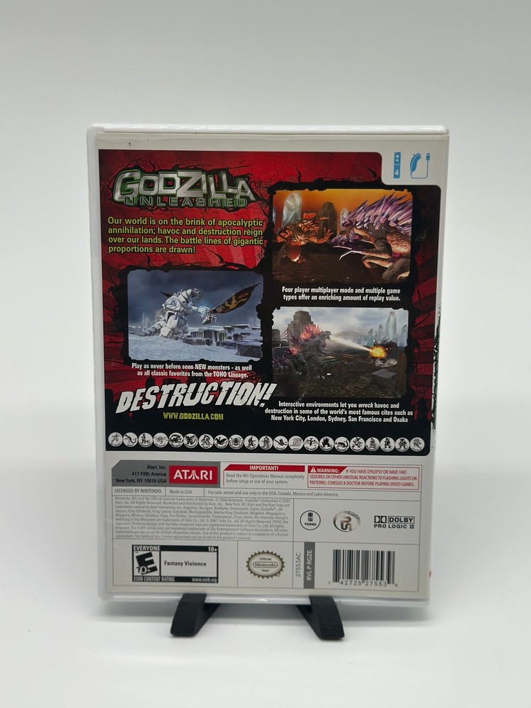 Preowned Like its predecessors, Godzilla Unleashed plays as a 3D fighting game with the option to play with up to four monsters at a time, with or without teams . While the PS2 version involves only button presses, the Wii version uses a combination of button presses and physically moving the Wii Remote and Nunchuk. < >If you are interested in combined shipping on multiple items, please inbox us immediately. Combined shipping will not be processed unless buyers message us to request it within the hour of purchasing. Estimates will be given after the purchase has been made.< >For pre-combined shipping and international shipping, visit our website at rickiegames.com and email us. Please include your full name, desired items, and email address in your email inquiry.< >Additionally, if you'd like to see our full inventory, including Nintendo Switch games, consoles, controllers, and more, feel free to check out our website at rickiegames.com.< >Are you a first-time buyer? Message us through email on our website and receive a special welcome discount of 15% on your first order!