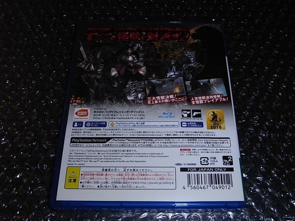 Godzilla VS Bandai Namco Japan Import Tested Working Used Sony PlayStation Description Godzilla VS PS4 Game Bandai Namco Japan Import Tested Working Used Sony PlayStation 4 Take control of legendary kaiju in Godzilla VS , the action-packed battle game developed by Bandai Namco for the PlayStation 4. Unleash destruction as Godzilla, Mothra, King Ghidorah, and other iconic monsters in epic city battles. Condition: Used – Tested and working. Disc only (No case or manual). Minor surface scratches, but fully functional. Language: Japanese Region: NTSC-J (Japan) Platform: Sony PlayStation 4 (PS4) Genre: Action / Fighting Publisher: Bandai Namco Compatible with region-free PS4 consoles. Shipping Ships from Japan via FedEx, DHL。 International Buyers - Please Note: Import duties and taxes are not included in the item price or shipping cost. Please check with your country?s customs office to determine these additional costs before bidding or buying. Additionally, if the delivery address is in a remote area, there may be additional charges by FedEx or DHL. If such charges occur, you may be asked to pay an additional $15 to $20.