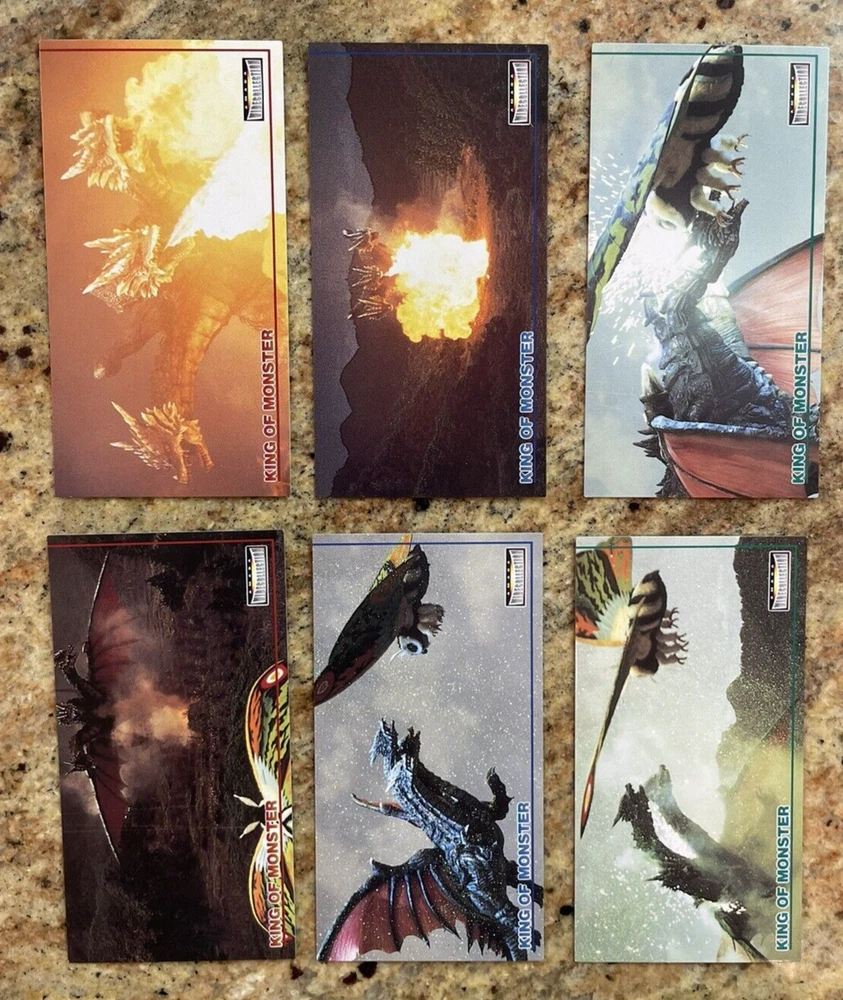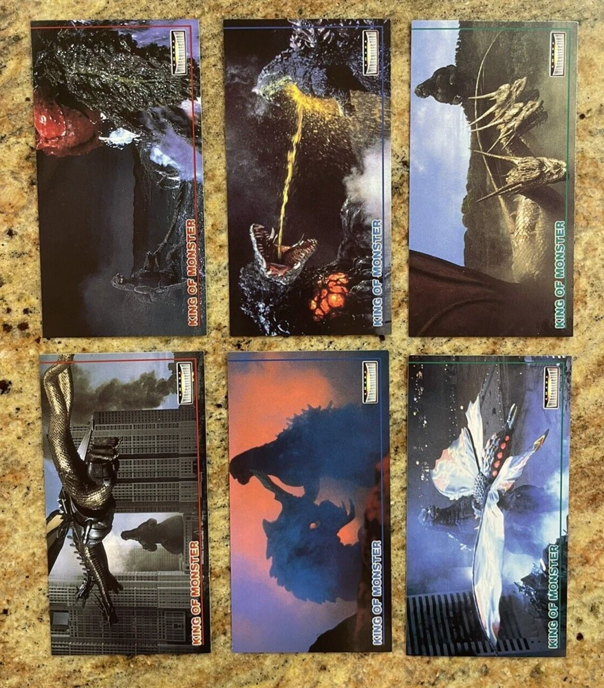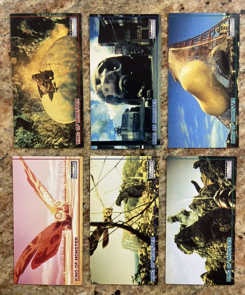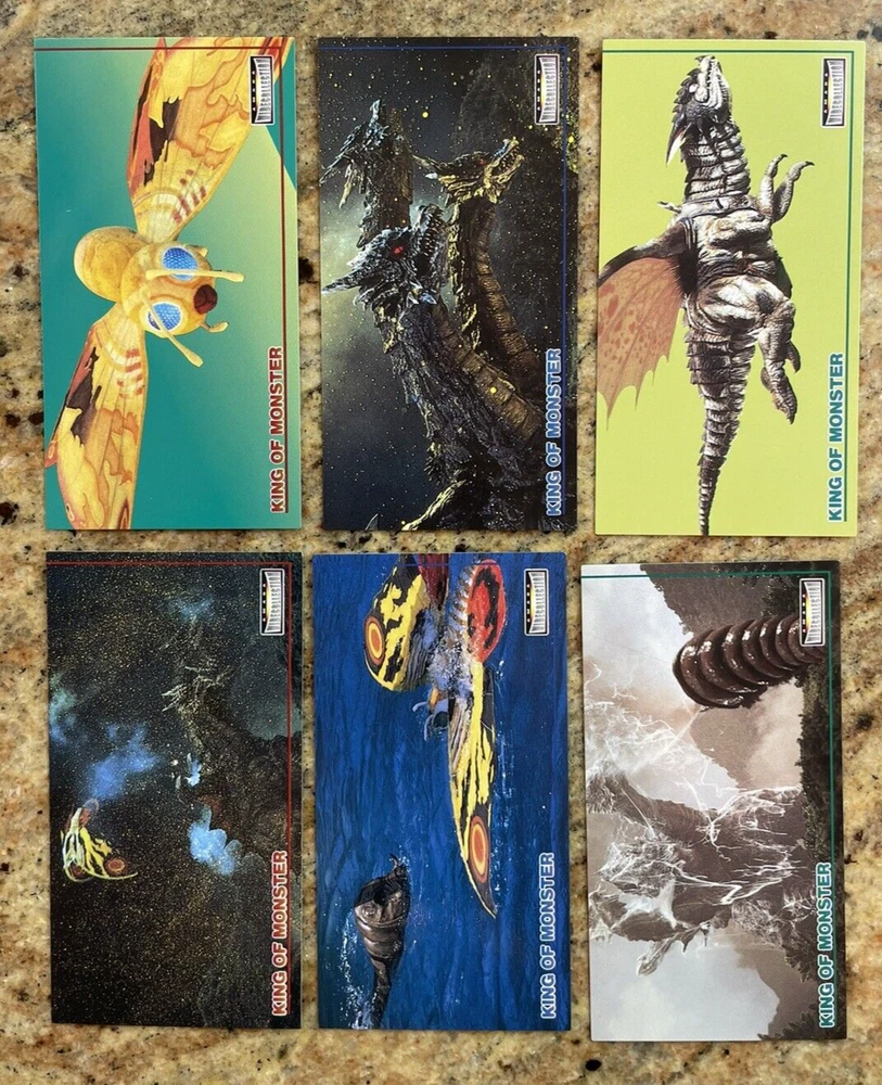 Complete set of 75 different "widevision" wide collection cards featuring Godzilla and other characters! This set was produced in Japan and is a phenomenal set to own. Buyer will also receive, in addition to the complete set, a wrapper as well from the set. The first 12 cards in the set are unique foil cards and truly add to the magnificence of the set. Extremely hard to find as a complete set as most of these have been broken up and you can find singles listed on ebay from $10 to $25 each...here's your chance to get them all!! Thanks for looking!!