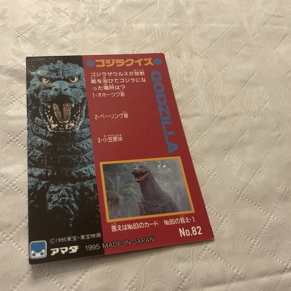 This vintage Godzilla card by AMADA is a rare find for collectors of animation merchandise. Made in Japan, it features the iconic kaiju in stunning detail and is sure to be a prized possession for any fan of the franchise. The card is a must-have for those who appreciate Japanese language and culture, as the text is written in its original form. Whether you're a seasoned collector or a newcomer to the world of Godzilla, this AMADA card is a fantastic addition to any collection.