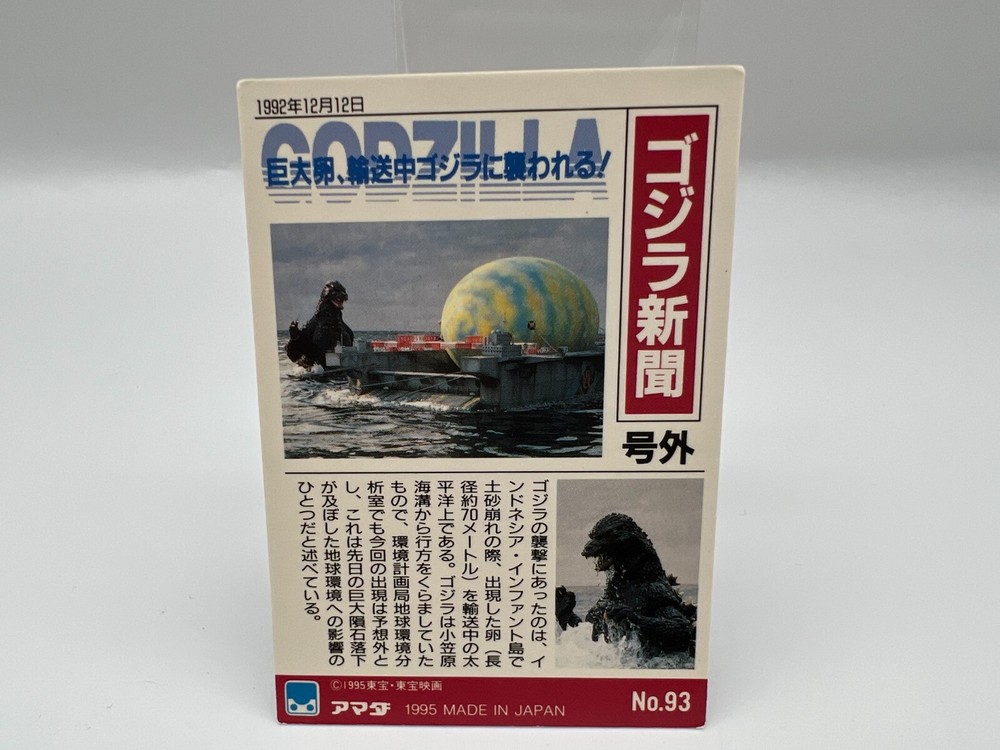 Vintage 1993 Godzilla Japanese AMADA Trading Card Rare Fast Shipping