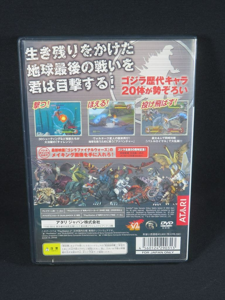 ps2 used game From Japan SKU: B3633 Description Please read before purchase: This item is used and may show signs of wear. Please check the photos carefully. Returns will not be accepted for reasons such as “I didn’t read the description.” This item is for Japanese SONY PS2 console only. It will not work with US or other region consoles. Returns due to compatibility issues will not be accepted. If you are unsure about compatibility, please contact us before purchasing. ============= From Japan ============= We combine shipping for multiple items. Feel free to message us anytime. Eco-friendly shipping. We reuse packaging materials. ====================== Item info ====================== PS2 Godzilla game no manual. There are some scratches on the disc surface, which may not be very noticeable in the photos but are clearly visible to the naked eye. However, it works without any issues. Please see our other PS2 games. Weight: approx. 114g ====================== Shipping ====================== Economy international shipping = registered airmail or epacket lite (SAL) by Japan post. (This is a shipping method that makes you look forward to waiting.) Standard international shipping = EMS or FedEx (This is the shipping method that will get it to you faster.) FedEx international shipping = FedEx (This is the shipping method that will get it to you faster.) ====================== Return & Guarantee ====================== - 60-day return policy (item must be returned in original condition)- Full refund if item is not as described - Buy with confidence! International Buyers - Please Note: ・Import duties, taxes and charges are not included in the item price or shipping charges. These charges are the buyer’s responsibility. ・Please check with your country’s customs office to determine what these additional costs will be prior to bidding/buying. ・These charges are normally collected by the delivering freight (shipping) company or when you pick the item up - do not confuse them for additional shipping charges. ・We do not mark merchandise values below value or mark items as “gifts” - US and International government regulations prohibit such behavior. Japanese retro game. From Japan.