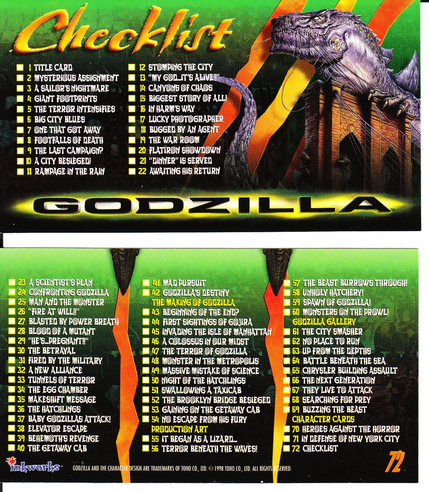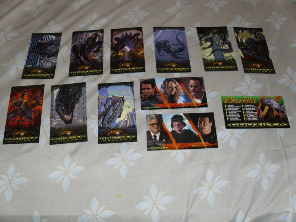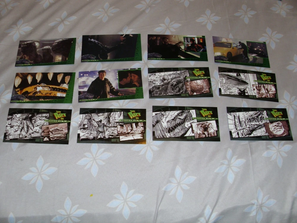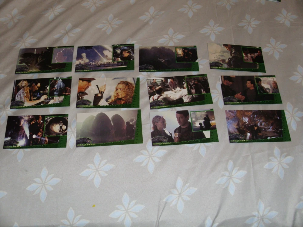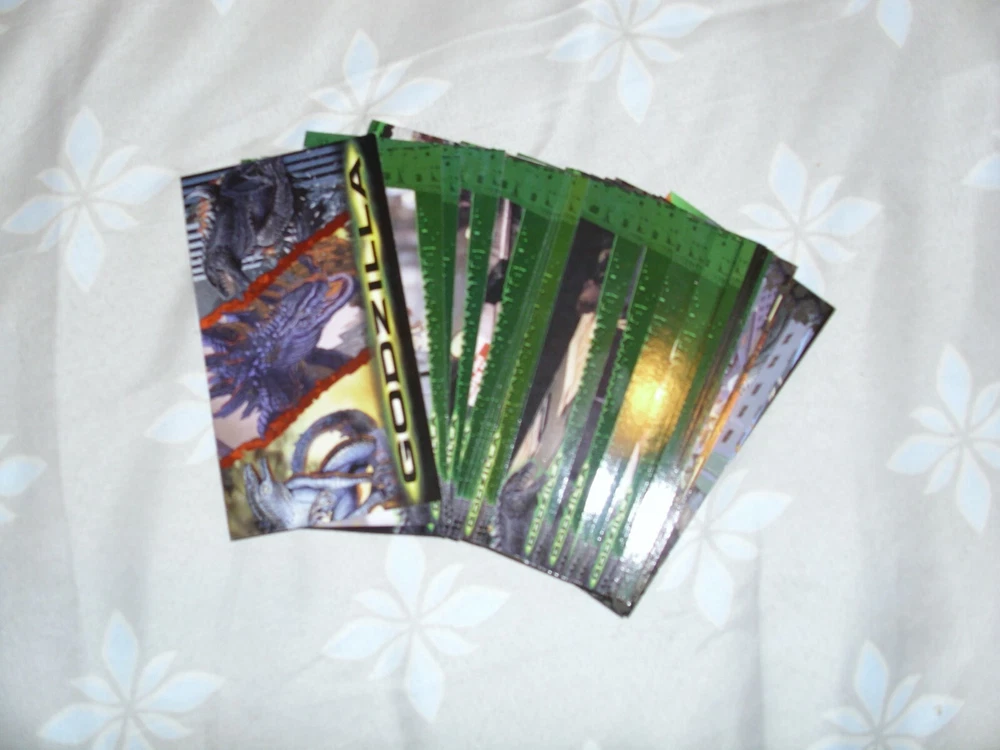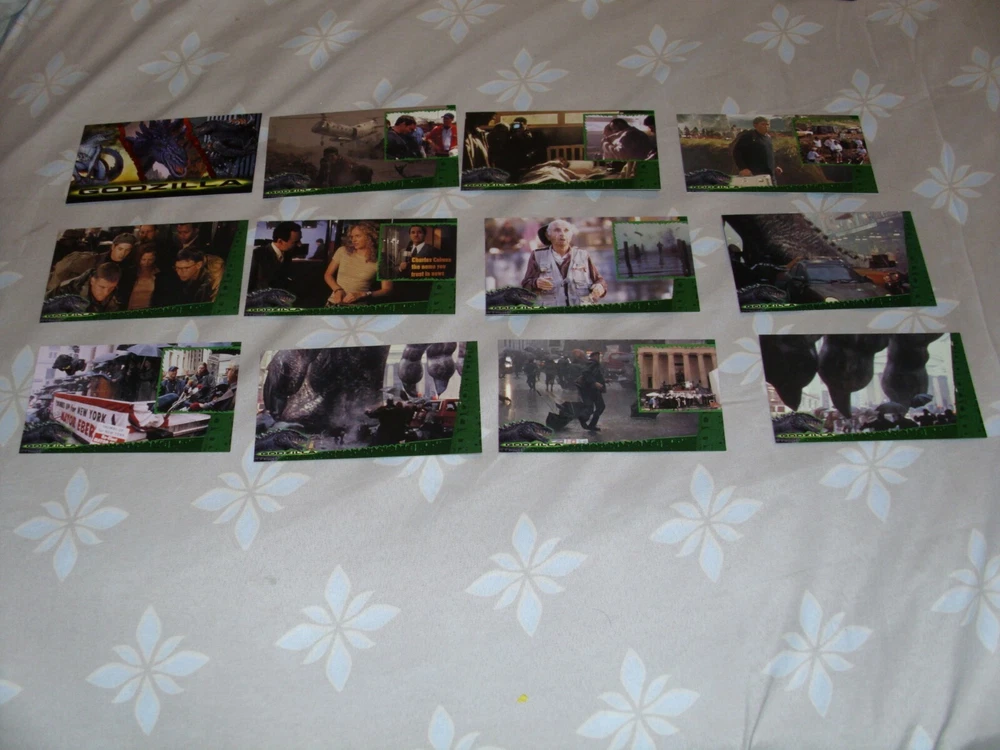 These Godzilla trading cards are a must-have for any fan of the iconic monster. Featuring scenes and characters from the 1998 film, these non-sport cards are made from high-quality card stock and are perfect for collectors. The cards are in great shape and ready to be added to your collection. The set includes cards featuring action-packed scenes, as well as character cards and cards highlighting the film's sci-fi elements. The cards are all in English and are part of the Godzilla franchise. Don't miss out on the chance to own a piece of movie history with these Godzilla the Movie Cards. You can make offers from just one to all of the cards. Please state which cards to get when making offers. The following Godzilla cards are available: Each order comes with one semi-opened wrapper (while supplies lasts). #1-Title Card (2 available) #2-Mysterious Assignment #3-A Sailor's Nightmare #4-Giant Footprints #5-The Terror Intensifies #7-One That Got Away #8-Footfalls of Death (2 available) #9-The Last Campaign? (2 available) #10-A City Besieged! #11-Rampage in the Rain #12-Stomping the City (2 available) #14-Canyons of Chaos #15-Biggest Story of All (2 available) #16-In Harm's Way #17-Lucky Photographer #19-The War Room (2 available) #21-"Dinner" is Served #22-Awaiting His Return (2 available) #24-Confronting Godzilla (2 available) #25-Man and the Monster (2 available) #26-"Fire at Will!" #27-Blasted by Power Breath #28-Blood of a Mutant #29-"He's...Pregnant!!" #30-The Betrayal #31-Fired by the Military #32-A New Alliance #34-The Egg Chamber #35-Makeshift Message #36-The Hatchlings (2 available) #37-Baby Godzillas Attack! (2 available) #39-Behemoth's Revenge (2 available) #41-Mad Pursuit #42-Godzilla's Destiny (2 available) #44-First Sightings of Gojira (2 Available) #45-Invading the Isle of Manhattan #46-A Colossus in our Midst #47-The Terror of Godzilla #48-Monster in the Metropolis (2 available) #50-Night of the Hatchlings #51-Swallowing a Taxicab (2 available) #52-The Brooklyn Bridge Besieged #53-Gaining on the Getaway Cab #54-No Escape from his Fury (2 available) #55-It Began as a Lizard #56-Terror Beneath the Waves (2 available) #59-Spawn of Godzilla (2 available) #61-The City Smasher #62-No Place to Run #63-Up from the Depths #65-Chrysler Building Assault (2 available) #66-The Next Generation #67-They Live to Attack (2 available) #68-Searching for Prey #69-Buzzing the Beast (2 available) #70-Heroes Against the Horror #72-Checklist The item will be shipped AFTER it's fully paid. Don't forget to leave feedback. If the item is not in auction, I'm open for Best offers. If you have any question about the product and/or combined shipping, ask me.