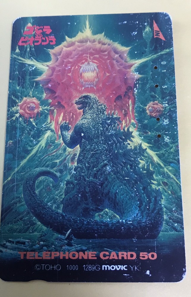 Godzilla vs. Biollante (1989) / Japanese Phone card / Movie Promotion This phone card was issued by a distribution company to promote "Godzilla vs Biollante" The card is already in used. S/H is $6.49 (Combined shipping :Buyers have to add $ 1.00 for each additional 1stub.) Enjoy auction !