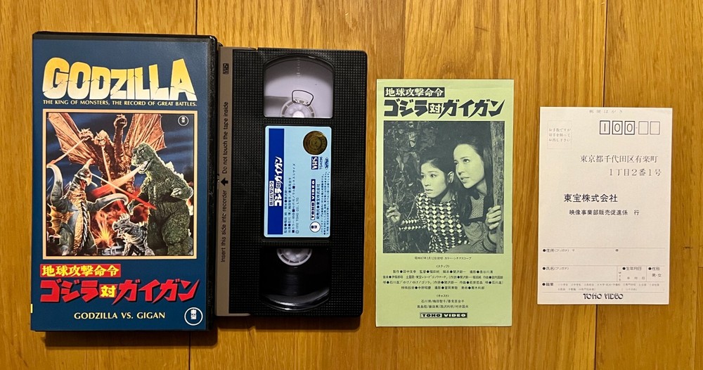 Godzilla vs Gigan VHS Tape Japan TOHO VIDEO With Rare Registration Card RARE INSERTS Save Money on Shipping! I combine! SHIPPING Important read. Fedex Shipping Only 1-3 business days. PRIORITY Very Fast