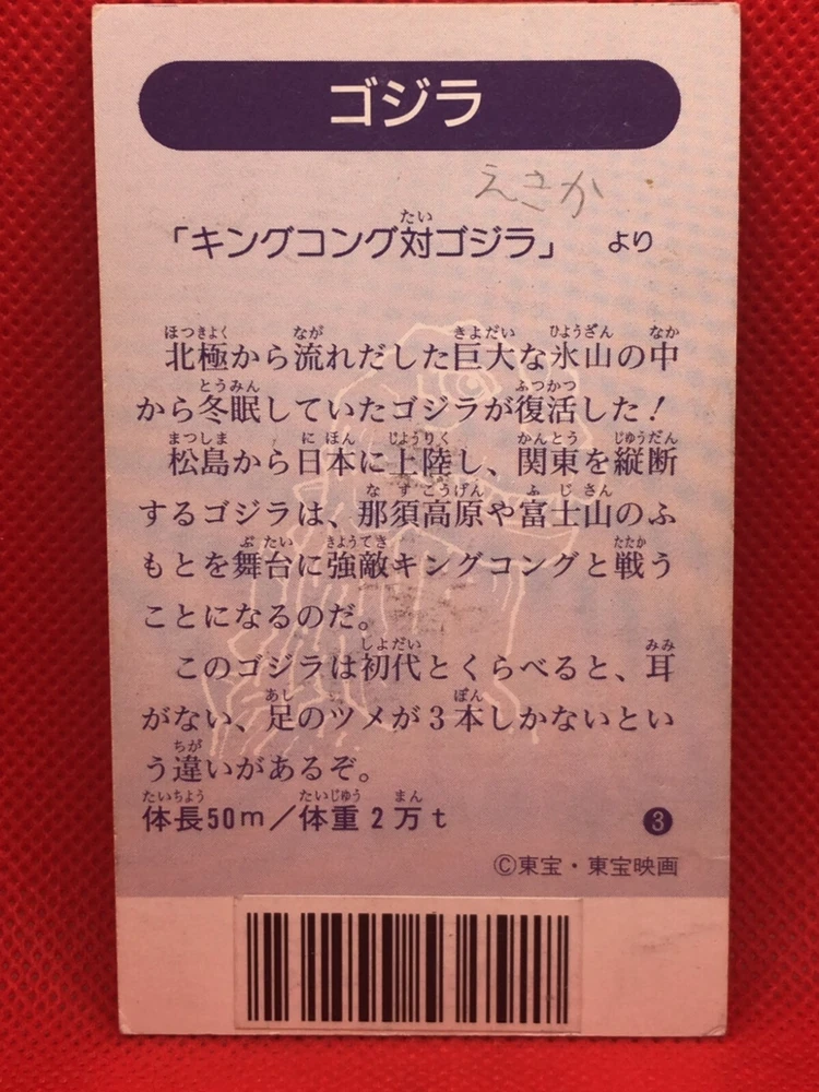 Godzilla vs King Kong 4inch Barcode Battler vintage TOHO rare card No.03
