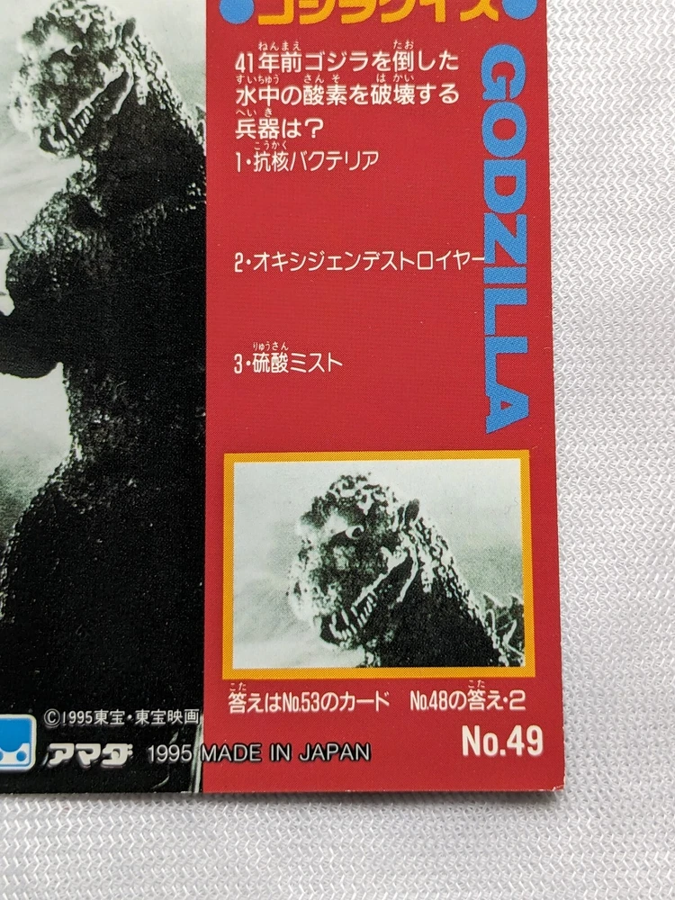 1995 Toho Godzilla vs King Ghidorah Amada No.49 Retro Japanese Card