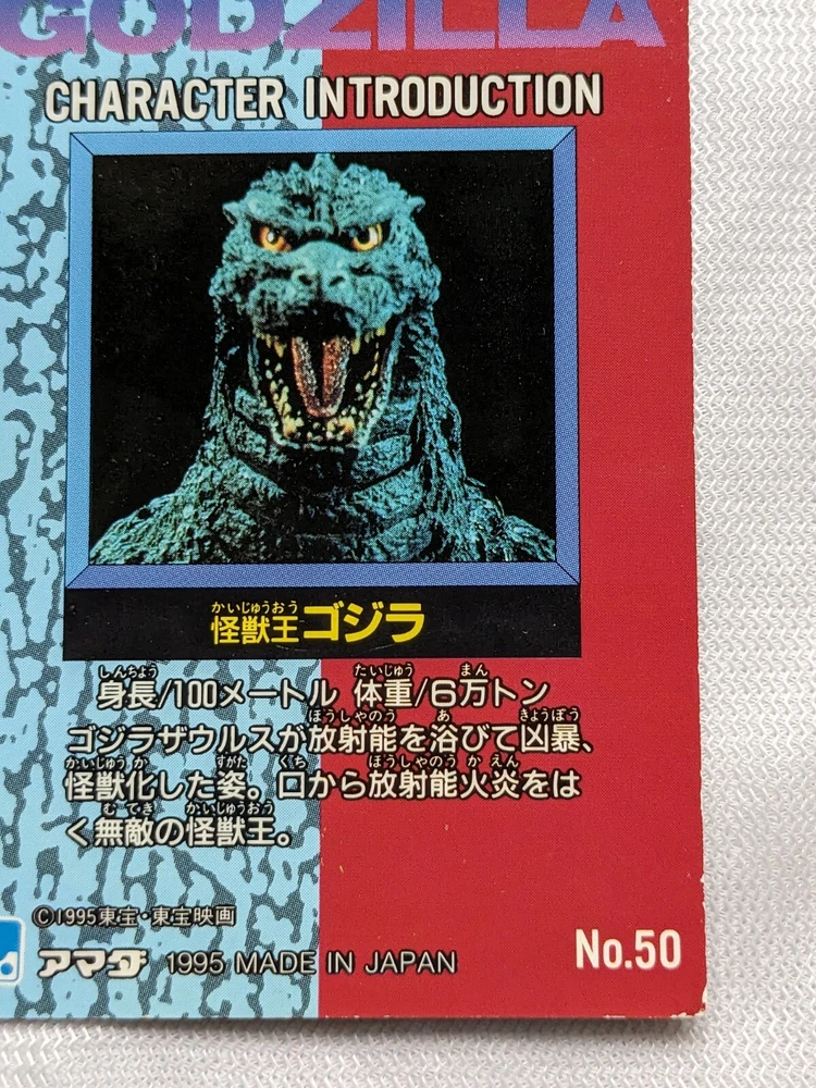 Godzilla vs King Ghidorah 1995 Amada No.50 Toho Japanese Vintage Trading Card