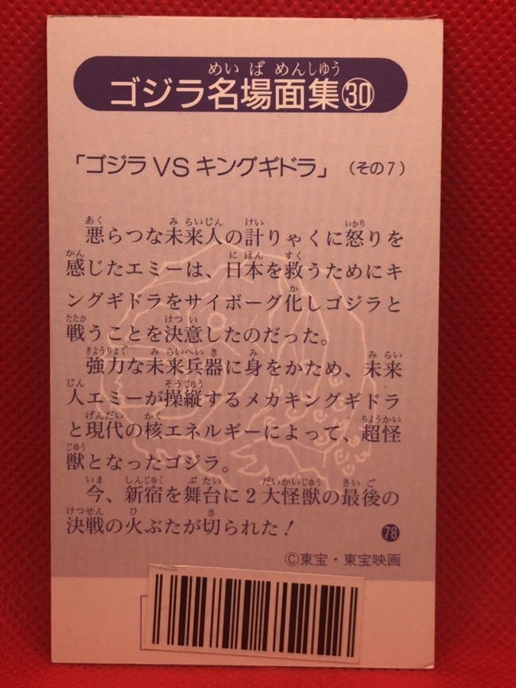 Vintage TOHO Godzilla vs King Ghidorah 4in Barcode Battler Card No 78 rare collectible