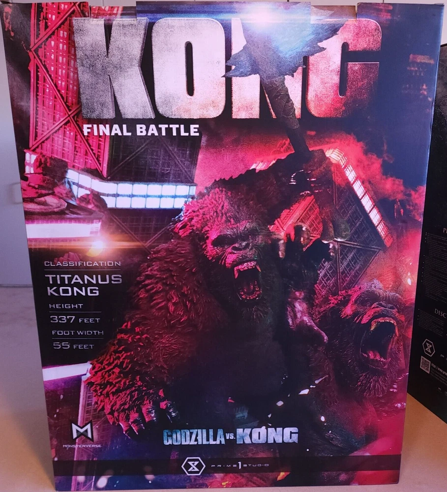 Brand New (Un-Open) Godzilla vs Kong Ultimate Diorama Masterline Kong Final Battle Action Statue - by Prime 1 Studios Model: UDMGVK-02 Number 073 of 150 Only Made Comes in two large boxes . The larger Box where the Building come in does have some minor wear from moving it around and storage. Other box which the Kong comes in is in Excellent condition. Please view the images of the boxes for more detail description. Will Be shipped out in Two Separate Large Boxes. Kong bows to no one! And when his rival Alpha Titan, Godzilla, comes a-calling; Kong answers in spades! The King of Skull Island has climbed his way out of his Hollow Earth Kingdom to answer Godzilla’s challenge in a nightmare vision of Hong Kong! This massive Kong diorama stands at a towering 31.5 inches tall! Kong uses the environment to his advantage in this ultimate diorama of Hong Kong cloaked in darkness and fire. The Eighth Wonder of the World launches off an obliterated building to hurl himself at the King of Monsters! Prime 1's sculptors have captured the abject rage in Kong’s face and the determination in his posture. Kong takes aim at Godzilla with his right hand and readies his game-changing Battle Axe in his left. We’ve taken great care to render Kong’s simian fur, battle-scarred chest, and gigantic proportions true to his film version. Rounding out this dynamic diorama is a city in ruins! We’ve lit building windows with LED Illumination, while other structures feature blazing fire and smoke. Highways have collapsed and damaged vehicles are strewn about as high atop one building, a helicopter waits for rescue passengers that are not coming. This Ultimate Kong diorama is a breathtaking in and of itself, but what if there was a way to have Godzilla and Kong fight head-to-head? However, if you’re a focused Kong fan, you owe it to yourself to get this Ultimate Kong Diorama today! Sold Out in Stores! THIS WOULD BE A GREAT ADDITION TO YOUR COLLECTION TODAY. Product Features 31.50 inches tall (80.01cm) Made of polystone and other materials From the Godzilla vs. Kong movie Highly detailed Features LED lights throughout the diorama Track Page Views With Auctiva's Counter