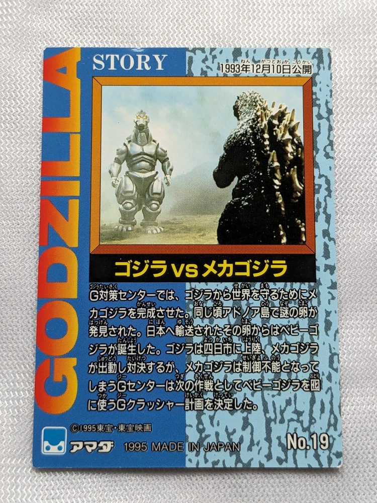 1995 Toho Godzilla vs Mecha Godzilla Amada No.19 Retro Japanese Card