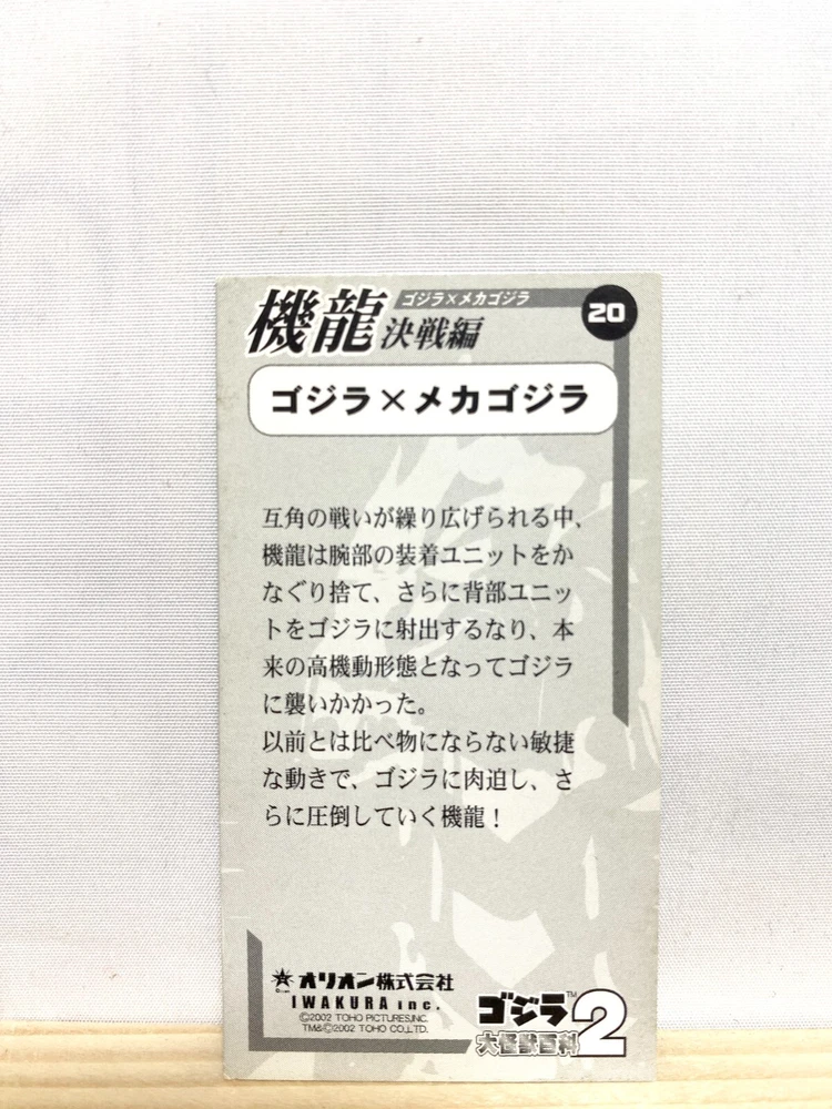You can get a discount if you buy the products in bulk Please select multiple items you would like to purchase and send us a message. I would be happy if I could make a good deal with you. Send us the URL of the product you want. If you don't know, send us the product number. "a-ri-ga-to-u" I live in Tokyo, Japan. I sell Japanese original goods and character goods. Please feel free to say "Hi" if you find the item that you want. Description [Title] Godzilla vs Mecha Godzilla Monster Encyclopedia 2 Card SFX TOHO TCG Japan No.20 [Condition] Used."" Please judge with photos."" Shipping Economy Shipping [ No Tracking number , Japan Post Airmail] : Cost Free, About 2-3 weeks to arrive --Shipping-- Shipping from Japan Ship to Worldwide Airmail (No insurance & No tracking number, about 7-14 days to USA.) tracking number +4$ (Insurance & Tacking number, about 7-14 days to USA.) EMS +30$ (insurance &tracking number 3-7 days to USA.) International Buyers - Please Note: Import duties, taxes and charges are not included in the item price or shipping charges. These charges are the buyer's responsibility. Please check with your country's customs office to determine what these additional costs will be prior to bidding/buying. These charges are normally collected by the delivering freight (shipping) company or when you pick the item up - do not confuse them for additional shipping charges. We do not mark merchandise values below value or mark items as gifts - US and International government regulations prohibit such behavior.
