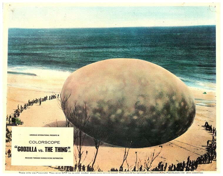 Godzilla vs. The Thing Original Lobby Card aka Mothra vs. Godzilla aka Mosura tai Gojira Akira Takarada, Yuriko Hoshi, Hiroshi Koizumi, Yu Fujiki, Kenji Sahara Japanese Cult Sci Fi 1964 Good/VG Condition (pinholes) Silver Screen Mementos are pleased to be able to offer this authentic original Lobby Card measuring 8x10 inches. This lobby card is from Great Britain and was printed during the actual year the film was released in movie theaters. The lobby card (also known as Front of House/ FOH card in the UK) was created by the film studios to publicize the movie and was intended for display outside the movie theatre in special glass display boxes. These are NOT reproductions! You are looking at a truly original piece of cinema art, a genuine collector's item. We have a huge archive of over 250,000 original lobby cards, mostly from the 1930's to the 1980's. We will be releasing many more rare gems from our vast collection, which will include lobby cards, original photographs, movie stills, magazines, brochures negatives, transparencies, slides and other collectible items of movie memorabilia. Powered by SixBit's eCommerce Solution