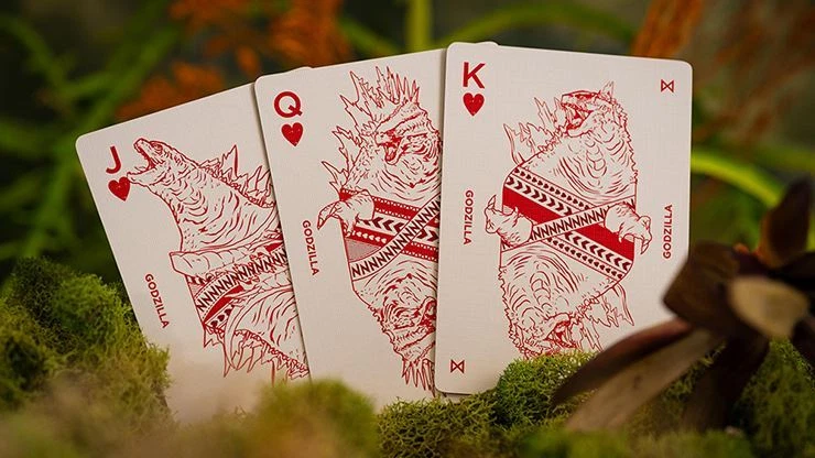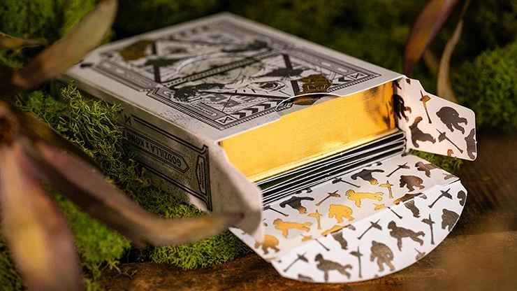 Please note: We only sell genuine playing cards from bonafide manufacturers. KONG | Special Edition for the Godzilla x Kong: The New Empire Playing Cards. Signature Room One Cards' accordion tuck box : The special editions of the Godzilla x Kong: New Empire Playing Card decks boast a unique accordion-style tuck box, specially designed by Room One Cards. This exclusive packaging showcases the classic silhouette of the iconic titans that create a sense of epicness. Embossing & hot foiling tuck box : The special editions also feature a tuck box embellished with mesmerizing embossing and hot foiling. The combination of these luxurious finishing techniques enhances the overall aesthetic appeal, making these decks a feast for the eyes. Gilded edges & foiling playing cards : Adding an extra touch of opulence, the special editions feature stunning gilded edges and foiling on the cards, with the symbolic colors of the titans. This exquisite detail elevates the visual appeal, creating a striking upgrade of the colors to the cards' artwork and enhancing the overall luxurious feel of the decks. Limited edition : Only 1,500 decks available worldwide. ____________________________________________________________________________________________ Are you ready to elevate your poker game with original playing cards? Visit our store today to browse our selection of authentic decks and start playing like a pro. Remember, when it comes to poker and other card games, we only sell original cards from genuine sources. Experience the difference for yourself and take your gameplay to new heights with premium quality playing cards.