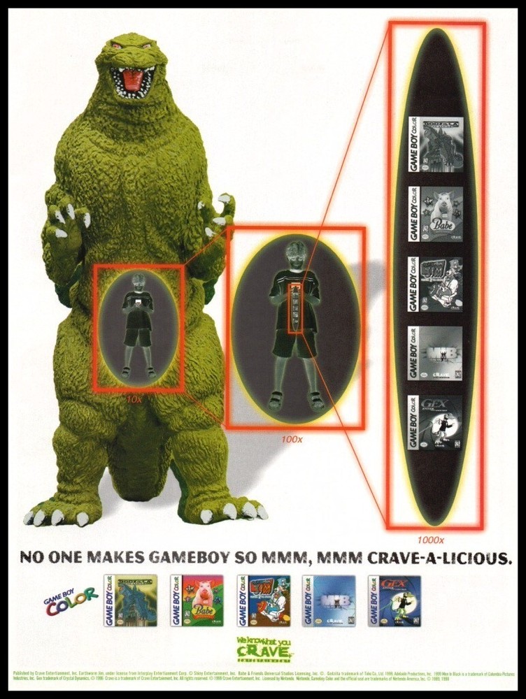 Godzilla-Crave Games 1999 Nintendo-print ad/mini-poster-Game room,man cave d�cor Godzilla-Crave Games 1999 Nintendo-print ad/mini-poster-Game room,man cave d�cor * FREE SHIPPING on orders over $27 * * Purchase total minimum=$27.00 (Not including tax). Limited time only. This vintage paper print advertisement will look great framed or a fantastic addition to your collection! Vintage ads are also a great gift idea for family and friends with unique hobbies, interests, and memories. Excellent vintage condition. 100% original and authentic - we do not sell copies or reproductions. Measures approximately 8" x 10.5"- Photo taken on black background to clearly show paper edges. We always package your items securely in quality storage display bags with acid-free backer boards which are then placed inside flat, waterproof mailers with sturdy cardboard to avoid shipping damage. COMBINED SHIPPING- no additional shipping cost after the first item when all items are added to the Shopping Cart and purchased on a single transaction. FREE SHIPPING offers (when available)- please add all items to your shopping cart and purchase on one transaction. The item for sale is a paper print ad carefully removed from a magazine. Vintage ads are often collected or framed and displayed. The item pictured in the advertisement (video game, action figures, etc ) is NOT FOR SALE. If you have any questions, please feel free to ask via the Contact Seller link at the top right of this page. Thank you for visiting 20th Century Memories and be sure to check out many more Gaming Ads in our eBay Store ! Check out our store links below for similar items and current sales... This vintage paper print advertisement will look great framed or a fantastic addition to your collection! Vintage ads are also a great gift idea for family and friends with unique hobbies, interests, and memories. Excellent vintage condition. 100% original and authentic - we do not sell copies or reproductions. Measures approximately 8" x 10.5"- Photo taken on black background to clearly show paper edges. We always package your items securely in quality storage display bags with acid-free backer boards which are then placed inside flat, waterproof mailers with sturdy cardboard to avoid shipping damage. COMBINED SHIPPING- no additional shipping cost after the first item when all items are added to the Shopping Cart and purchased on a single transaction. FREE SHIPPING offers (when available)- please add all items to your shopping cart and purchase on one transaction. The item for sale is a paper print ad carefully removed from a magazine. Vintage ads are often collected or framed and displayed. The item pictured in the advertisement (video game, action figures, etc ) is NOT FOR SALE. If you have any questions, please feel free to ask via the Contact Seller link at the top right of this page. Thank you for visiting 20th Century Memories and be sure to check out many more Gaming Ads in our eBay Store ! Godzilla-Crave Games 1999 Nintendo-print ad/mini-poster-Game room,man cave d�cor Godzilla-Crave Games 1999 Nintendo-print ad/mini-poster-Game room,man cave d�cor * FREE SHIPPING on orders over $27 * * Purchase total minimum=$27.00 (Not including tax). Limited time only. This vintage paper print advertisement will look great framed or a fantastic addition to your collection! Vintage ads are also a great gift idea for family and friends with unique hobbies, interests, and memories. Excellent vintage condition. 100% original and authentic - we do not sell copies or reproductions. Measures approximately 8" x 10.5"- Photo taken on black background to clearly show paper edges. We always package your items securely in quality storage display bags with acid-free backer boards which are then placed inside flat, waterproof mailers with sturdy cardboard to avoid shipping damage. COMBINED SHIPPING- no additional shipping cost after the first item when all items are added to the Shopping Cart and purchased on a single transaction. FREE SHIPPING offers (when available)- please add all items to your shopping cart and purchase on one transaction. The item for sale is a paper print ad carefully removed from a magazine. Vintage ads are often collected or framed and displayed. The item pictured in the advertisement (video game, action figures, etc ) is NOT FOR SALE. If you have any questions, please feel free to ask via the Contact Seller link at the top right of this page. Thank you for visiting 20th Century Memories and be sure to check out many more Gaming Ads in our eBay Store ! Check out our store links below for similar items and current sales... This vintage paper print advertisement will look great framed or a fantastic addition to your collection! Vintage ads are also a great gift idea for family and friends with unique hobbies, interests, and memories. Excellent vintage condition. 100% original and authentic - we do not sell copies or reproductions. Measures approximately 8" x 10.5"- Photo taken on black background to clearly show paper edges. We always package your items securely in quality storage display bags with acid-free backer boards which are then placed inside flat, waterproof mailers with sturdy cardboard to avoid shipping damage. COMBINED SHIPPING- no additional shipping cost after the first item when all items are added to the Shopping Cart and purchased on a single transaction. FREE SHIPPING offers (when available)- please add all items to your shopping cart and purchase on one transaction. The item for sale is a paper print ad carefully removed from a magazine. Vintage ads are often collected or framed and displayed. The item pictured in the advertisement (video game, action figures, etc ) is NOT FOR SALE. If you have any questions, please feel free to ask via the Contact Seller link at the top right of this page. Thank you for visiting 20th Century Memories and be sure to check out many more Gaming Ads in our eBay Store !