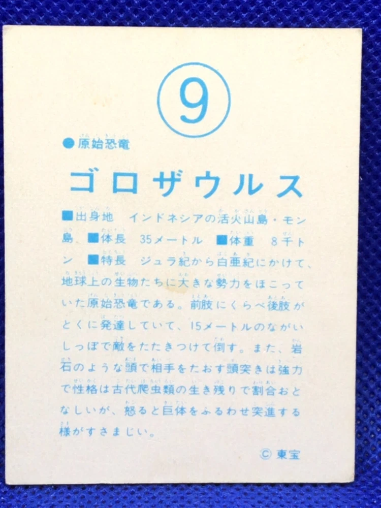 Gorosaurus Mini Menko Card 2.5 Inch No.9 TOHO 1970s Vintage Japanese Godzilla Collectible F/S