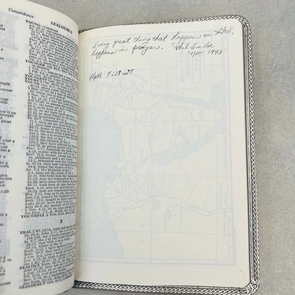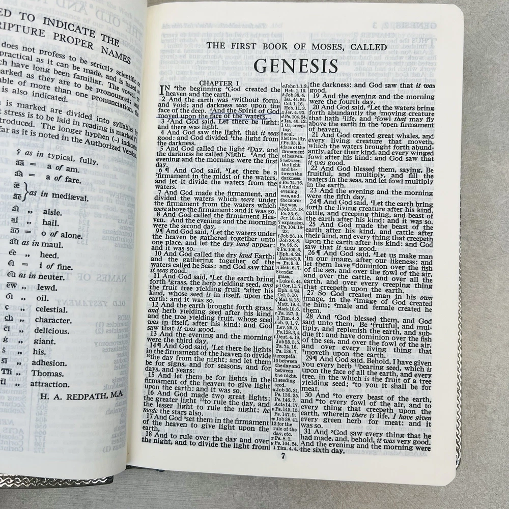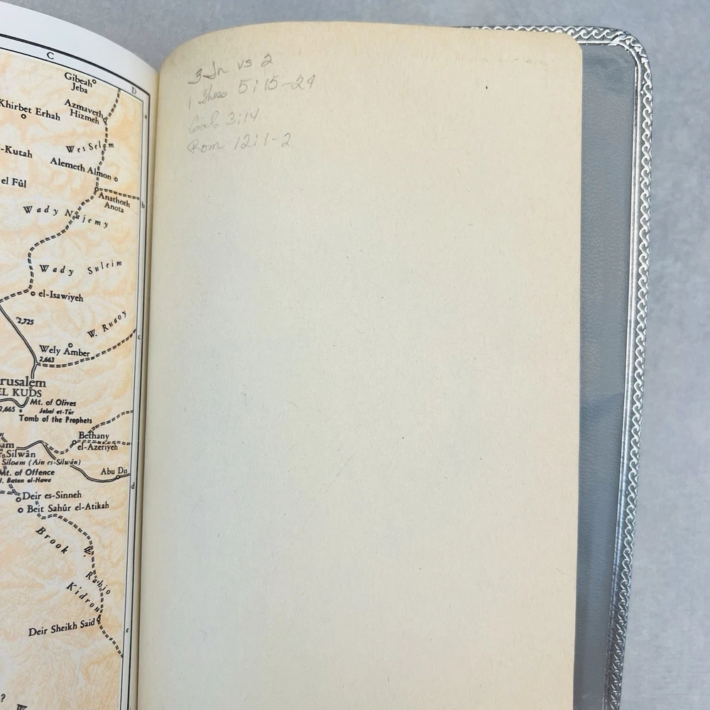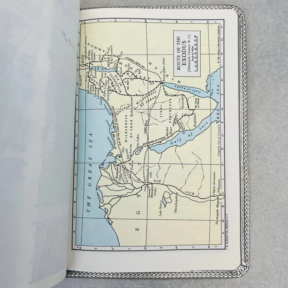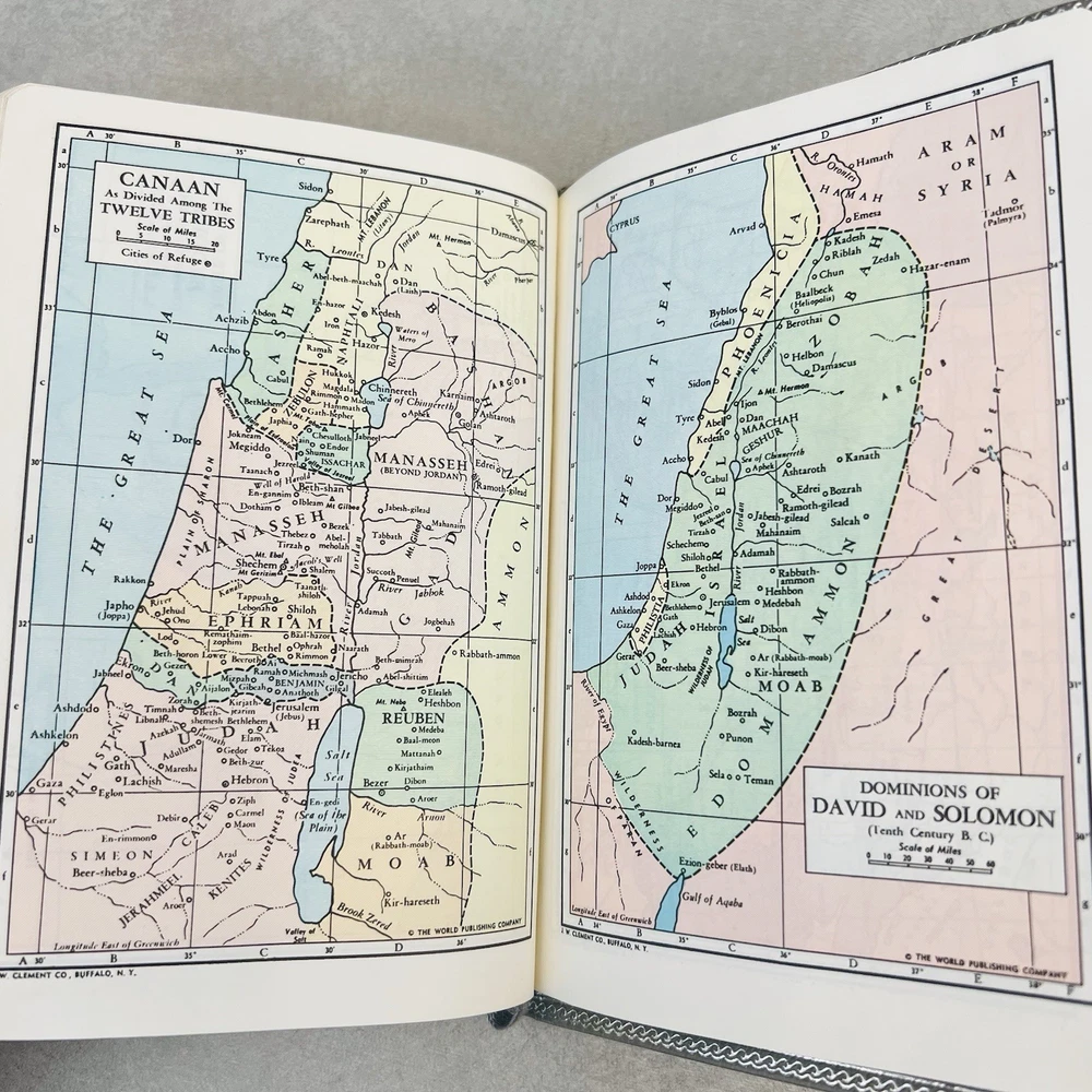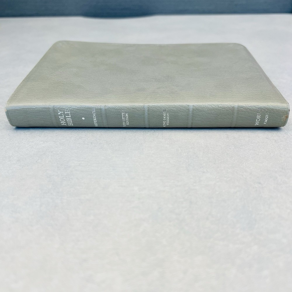 First page has a piece missing at the top. Seems to be missing some of the blank pages. Genuine bonded leather. Has births, marriages, deaths section. Some wear on edges and corners.