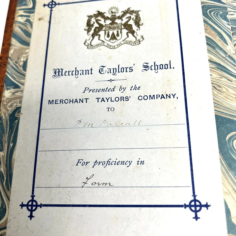 MERCHANT TAYLORS' COMPANY, GREAT ENGLISHMEN OF THE SIXTEENTH CENTURY BY SIDNEY LEE SECOND EDITION LONDON ARCHIBALD CONSTABLE AND COMPANY LIMITED 1907 Leather binding and marbled page edges. Cover and binding has some marks and damage. Pages are all intact. Please examine all photos for exact condition and use them as part of the description. Contact me if you have any questions. Thanks for looking.