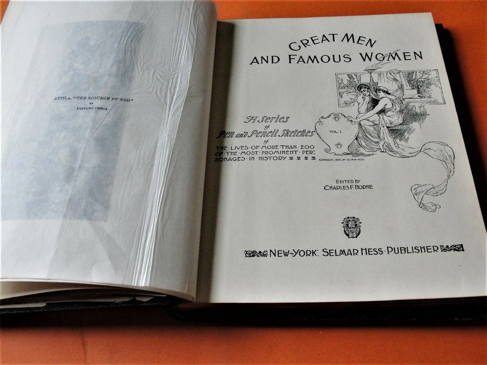 Welcome to Our Store !!!!!! You are bidding on the: For your consideration is a Lovely-Vintage- Great Men and Famous Women 1894 Selmar Hess 1st Edition 8 Volume Complete SET (Leather, Engravings, Pen Pencil Sketches). This piece is an interesting step back in time. Ready for a new collector's home. Size of the book approximately is 9-1/2 inches wide by 12 inches tall x 1 inches. Good or better overall Vintage condition. Great Men and Famous Women A series of Pen and Pencil Sketches of the lives of more than 200 of the most prominent personages in history. Edited by Charles F. Horne, New York Selmar Hess Publisher. Complete 8 volume set. Full of illustrations with protective sheets. Bright, crisp illustrations. The leather bookends and edges show some sign of wear but the interiors are in Very Good condition. Leather bound covers moderately rubbed, head & tail pieces chipped. Crisp internals & exquisite bright plates . This Book Set was printed in 1894, so expect its condition to be such, but overall decent shape for the age. Cosmetic condition is as clearly and accurately shown in the high-definition pictures provided. Please inspect all of them carefully! Overall, a rarity, and very uncommon. A really great History Book Set to add to any good collection. Pictures in the listings has been taken by Sony HD Digital Camera and are of the actual item for sale. We don’t copy any other Pictures or use Stock images. USA SHIPPING: W e box/package protectively – Ship Priority Mail/Insured within Continental USA. We accept PayPal ONLY WITH CONFIRMED SHIPPING ADDRESS ; INT’L SHIPPING: We box/package protectively for safe world-wide shipping. We accept PayPal ONLY WITH EXPRESS MAIL FULLY INSURED or PRIORITY MAIL FULLY INSURED. International Buyers are responsible for their country’s Customs Fees. SATISFACTION GUARANTEED!!! In the unlikely event that you receive the wrong item, a DOA item, or an item that is not as we described it . Return Policy: We must be notified of any Problems with the product arriving within 14 days via Email. Refund will be given as money back. Products returned for any reason and all return shipping costs, are the responsibility of the customer. All merchandise which is returned must be in the original condition and original packing. Please No return, exchange or refunds after that time frame. All sales are final. Please feel free to E-mail us with any questions. Thank you for your time! Good luck & happy bidding! SquareTrade © AP6.0 wsfepna stwflwar SquareTrade © squaretrade warranty v2.0 View more great items