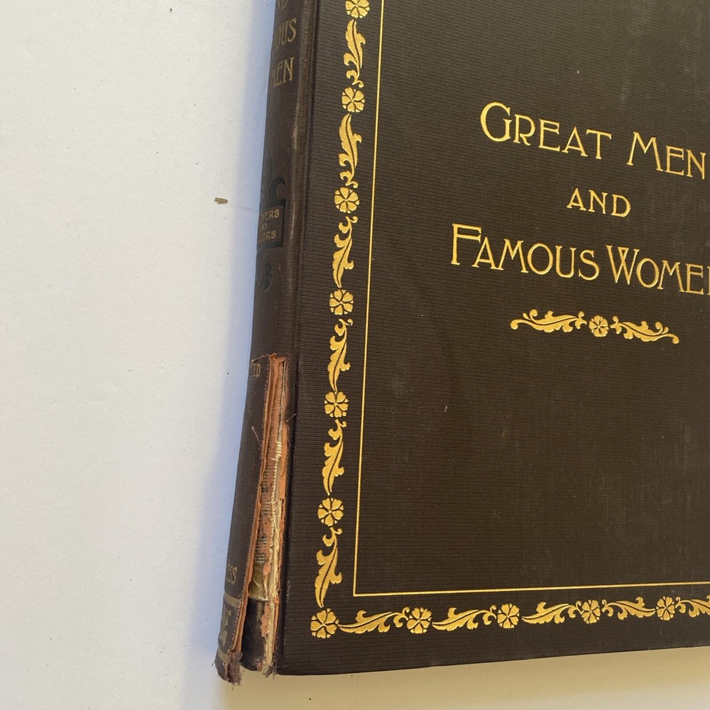 Step back in time with this elegant vintage hardcover book titled "Great Men and Famous Women." This classic piece features a beautifully embossed cover with intricate gold detailing along the edges, highlighting its historical charm. Inside, you'll find a collection of biographies and stories of notable figures from history, offering inspiration and insight into the lives of influential individuals. Ideal for collectors of antique literature, history enthusiasts, or as a unique gift for someone who appreciates the past. The book's condition reflects its age, adding to its character and authenticity.