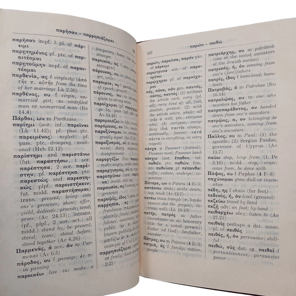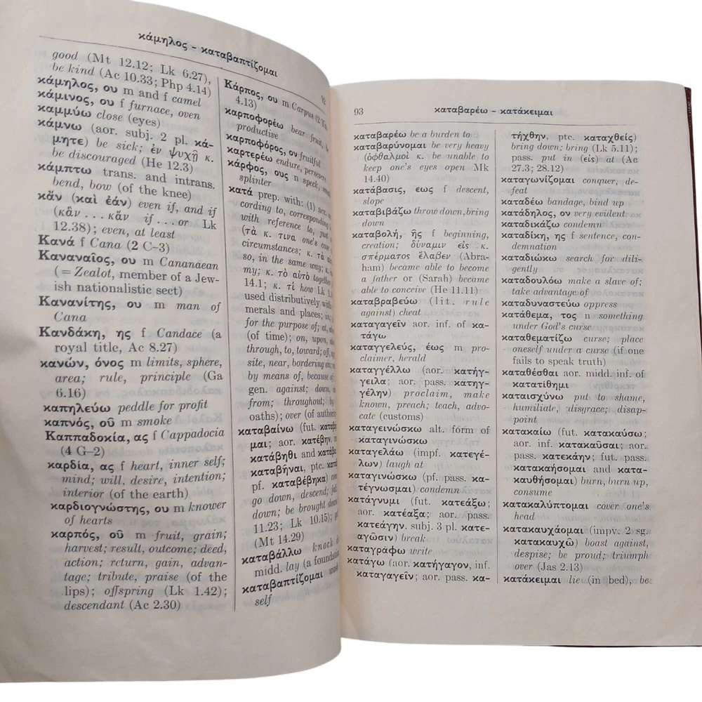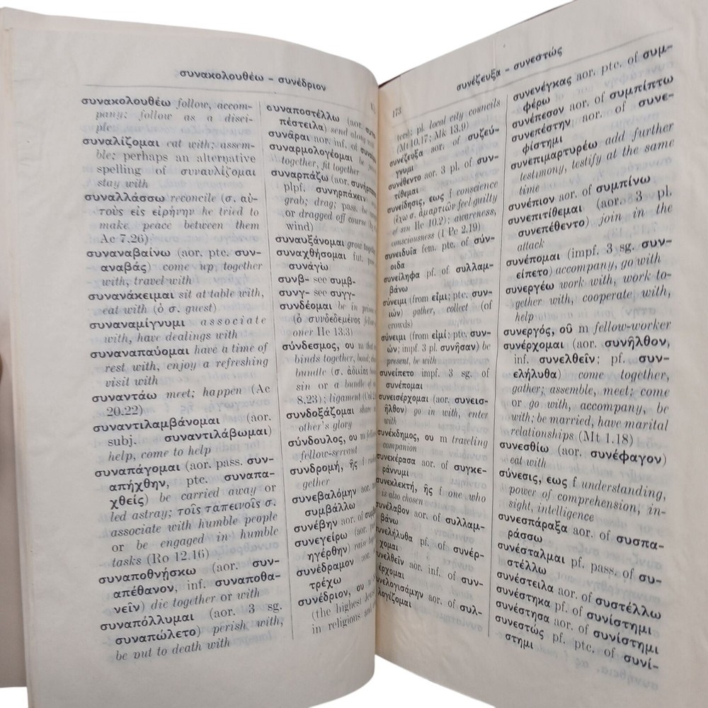 Unlock the secrets of ancient texts with this Greek-English dictionary. Perfect for deciphering cryptic messages and impressing friends at trivia night. • Hardcover with a rich maroon finish • Contains comprehensive translations • Perfect for students, scholars, and enthusiasts of biblical texts • Published in 1971 by United Bible Societies Cover shows some wear with edge slightly damaged. Name on first page. Condition: Pre-Owned Fair