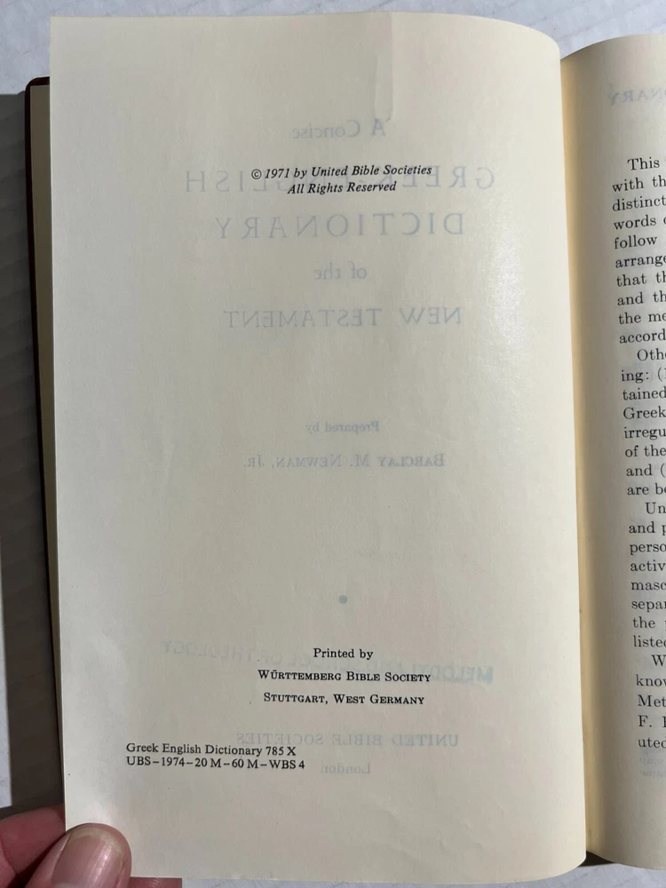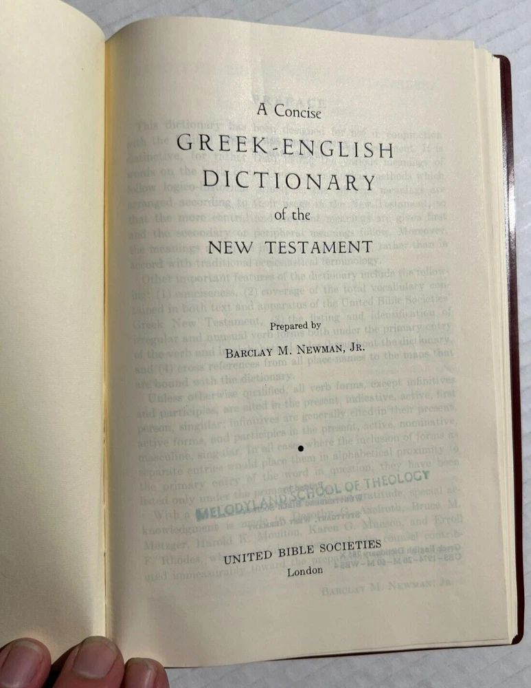 Greek-English Dictionary of the New Testament by Barclay M. Newman, Jr. 1971 HC B-50 Vintage leather bound book in very good condition. Please see photos for more details.