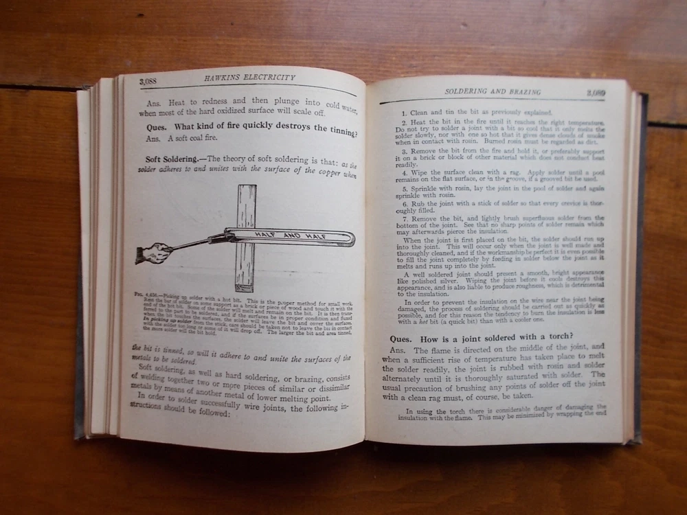 SOME DAMAGE- COVER HAS some white ink markings from another book, spine is loose & cover is slightly detached at the begining of the book. It is still readable & could be repaired. Fabulous information. Slight discount for condition of this old book. HAWKINS ELECTRICAL GUIDE #10 Modern Applications of Electricity- REFERENCE INDEX +combo ship 1917 antique * 6.5"x5", this is a real treasure!!! PROFUSLY ILLUSTRADED: Epic book: Please take a look at the pictures for the best description. A photo is as good as a thousand words -used, vintage item-THIS IS THE one THAT YOU WILL GET.. leather cover is fragile and coming undone. GREAT BOOK -Shipping is USPS. I can combine shipping on orders. Request combined shipping or you can pay & I will reimburse shipping, usually an additional item ships for an additional dollar. Media mail. This is a vintage book. Please view all photos for condition, details, and any flaws, usage, etc. I encourage all buyers to examine all photographs prior to purchase. All sales are final and -AS IS- condition. I will carefully wrap & ship your item as quickly as possible. Thank you for your business. I appreciate and value you as a customer. I will be adding inventory as often as possible, I have a lot. If you collect something specific, let me know & I will list it it I have it : ANTIQUE SUPER STORE (please add it to your FAVORITES ) so you will see many, rare and historic items , such as: tokens, bottles, books, postcards, and so much more. With Gratitude Always, Antique Super Store.