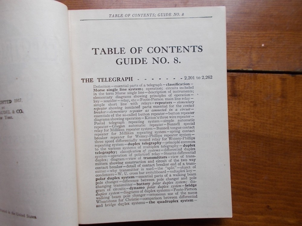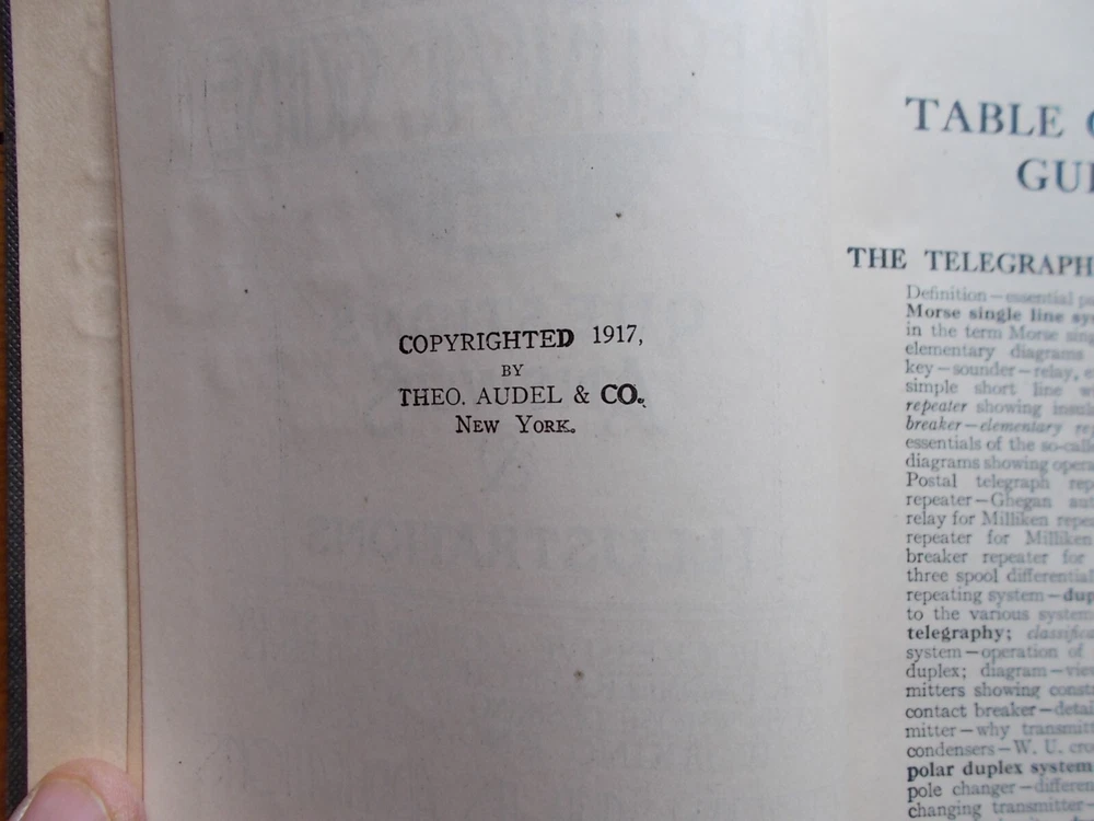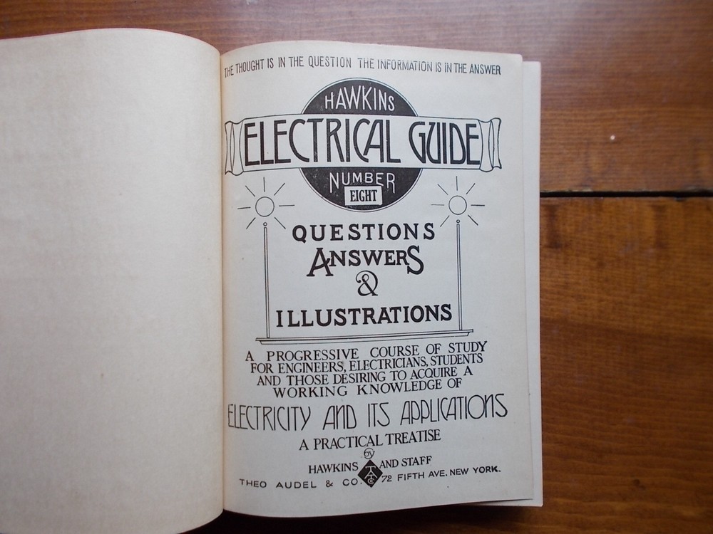 HAWKINS ELECTRICAL GUIDE #8 Telegraph, Wireless, Bells, Lighting+++1917. Crease on cover, slight separation spine on first page-readable and fabulous information. on 6.5"x5", this is a real treasure!!! PROFUSLY ILLUSTRADED: Epic book: Please take a look at the pictures for the best description. A photo is as good as a thousand words -used, vintage item-THIS IS THE one THAT YOU WILL GET.. leather cover is fragile and coming undone. GREAT BOOK -Shipping is USPS. I can combine shipping on orders. Request combined shipping or you can pay & I will reimburse shipping, usually an additional item ships for an additional dollar. Media mail. This is a vintage book. Please view all photos for condition, details, and any flaws, usage, etc. I encourage all buyers to examine all photographs prior to purchase. All sales are final and -AS IS- condition. I will carefully wrap & ship your item as quickly as possible. Thank you for your business. I appreciate and value you as a customer. I will be adding inventory as often as possible, I have a lot. If you collect something specific, let me know & I will list it it I have it : ANTIQUE SUPER STORE (please add it to your FAVORITES ) so you will see many, rare and historic items , such as: tokens, bottles, books, postcards, and so much more. With Gratitude Always, Antique Super Store.