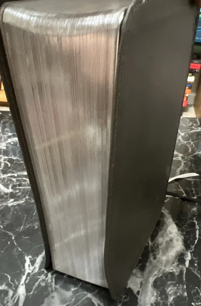 All pages are intact. Name engraved on cover. Clean text. Moderate shelf wear.