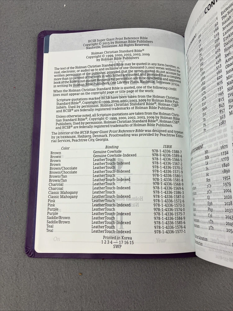 HCSB Super Giant Print Reference Bible, Purple LeatherTouch Holman VERY GOOD CONDITION -- CLEAN COPY/NO MARKINGS ON THE INSIDE (see pics) *Item will be protected well for shipping and comes with a tracking number for confirmation.* I ship out items every day so expect a quick delivery!