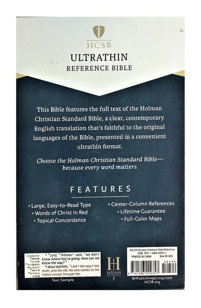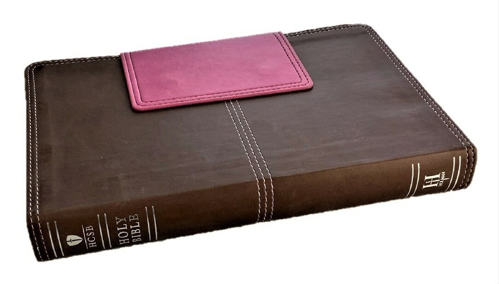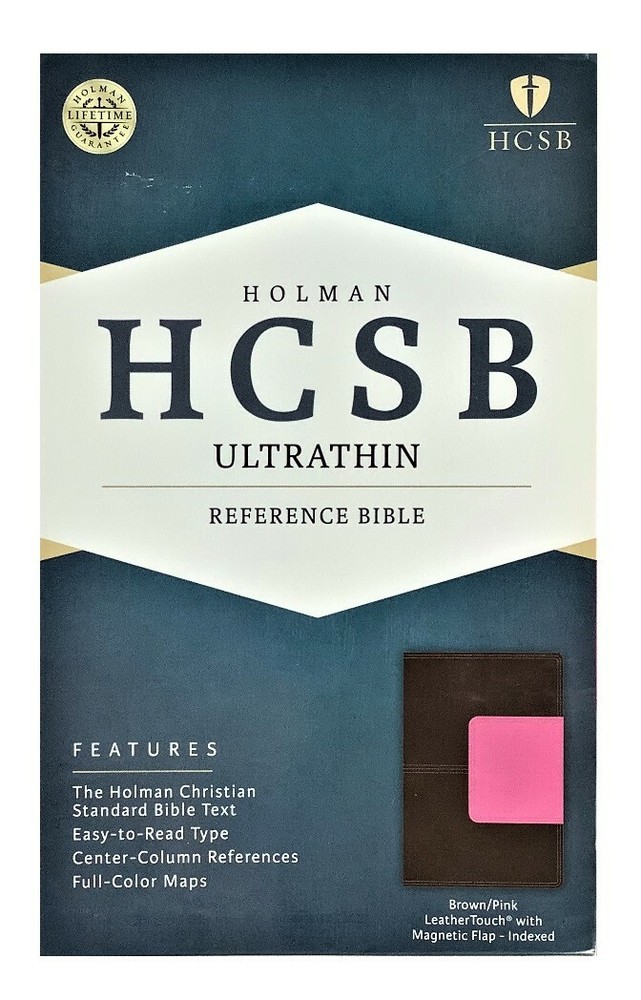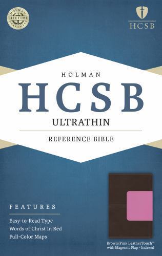 HCSB Ultrathin Reference Bible Pink Brown Leather-Touch - Indexed Magnetic Closure Flap Sewn Binding Ribbon Marker Brand New in Slip Cover Life Guarantee: Holman leather Bibles are guaranteed to last a lifetime. If any Holman bonded or genuine leather Bible is defective or falls apart under normal usage, Holman will replace it with a comparable Bible free of charge. Introducing the HCSB Ultrathin Reference Bible now available in today's most popular colors and designs. You'll enjoy holding this comfortable trim size and find the 8-point Bible text very easy to read but most importantly you'll be surprised just how thin this Bible is making it ideal to carry with you wherever you go. Features Two-column text setting Center-column references Topical subheads Topical concordance Words of Jesus in Red Eight pages of full-color maps Presentation page Ribbon marker Protective end-flap magnetic closure Thumb-indexed 8-point text size We ship out with 24 hours of payment from sunny South Carolina