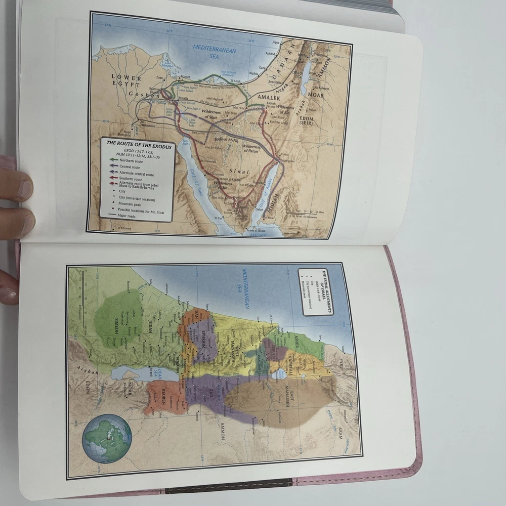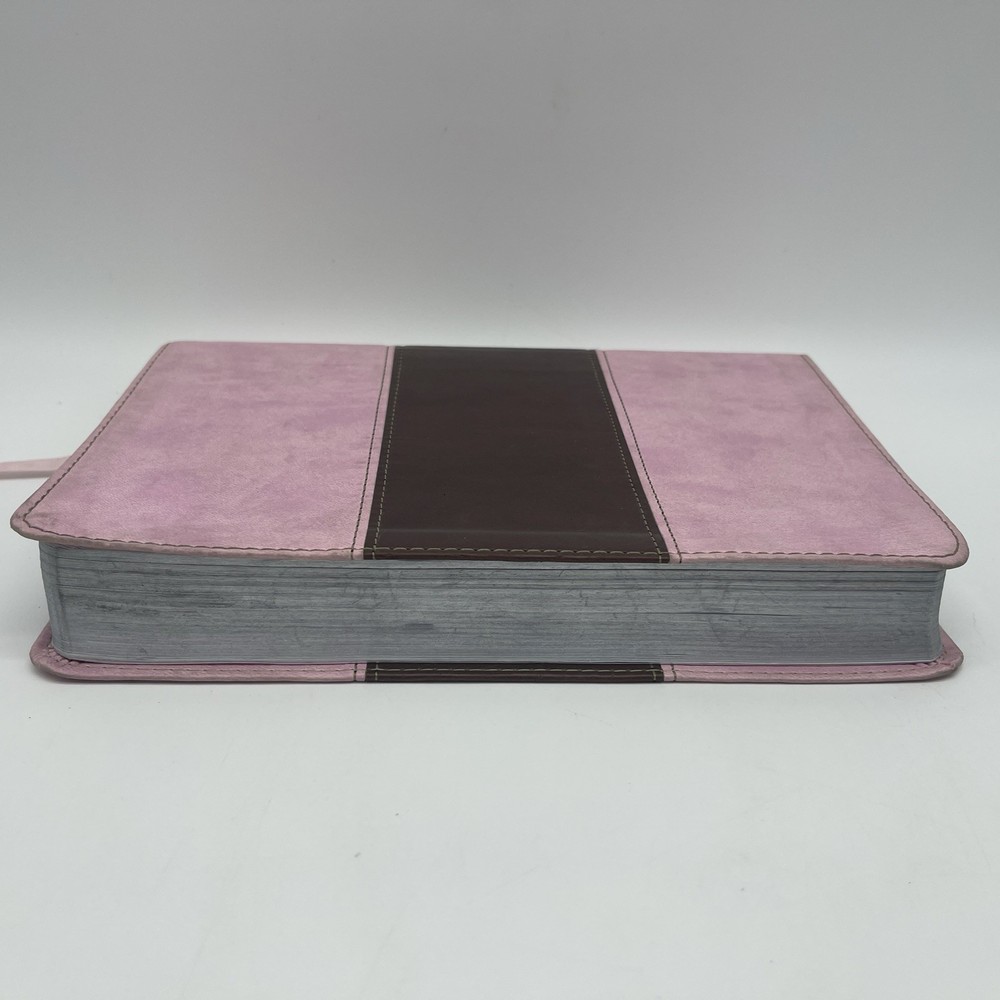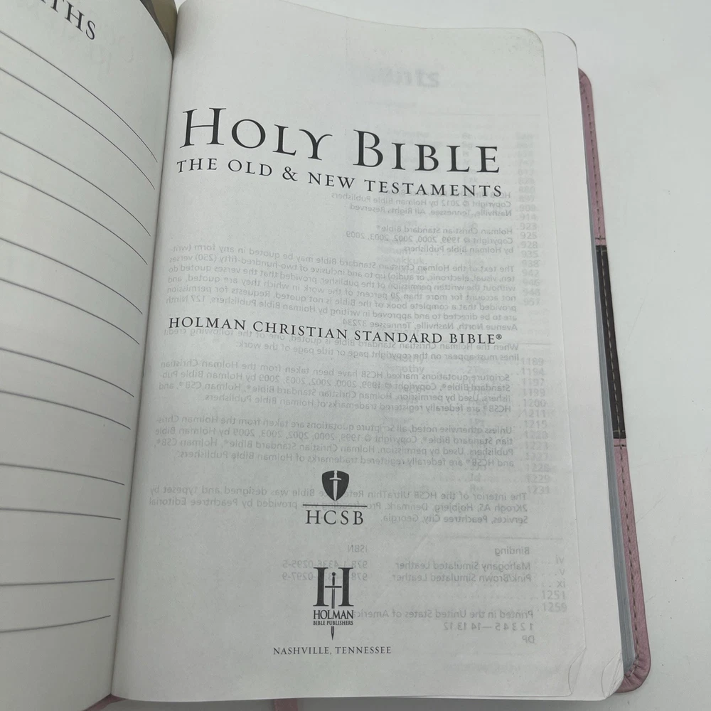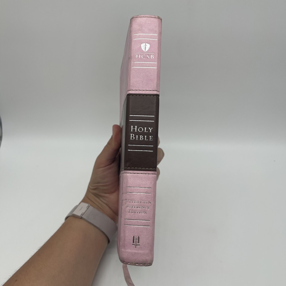 The HCSB Ultrathin Reference Edition Bible in Pink Brown Leather Touch is a beautiful and compact Bible designed for easy reading and reference. This edition, published by B&H in 2012, features a faux leather bound format and is signed by none. With a focus on religion and spirituality, this Bible is ideal for young adults and adults looking for a convenient and versatile resource for daily devotionals or spiritual guidance. Written in English by Holman, this nonfiction book is a valuable addition to any personal or family library. Writing on the first two pages!