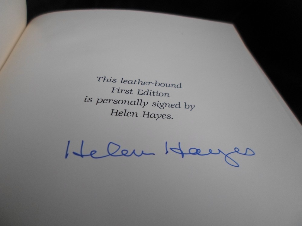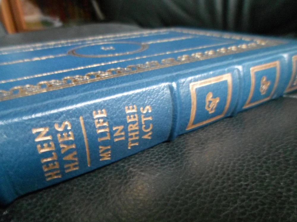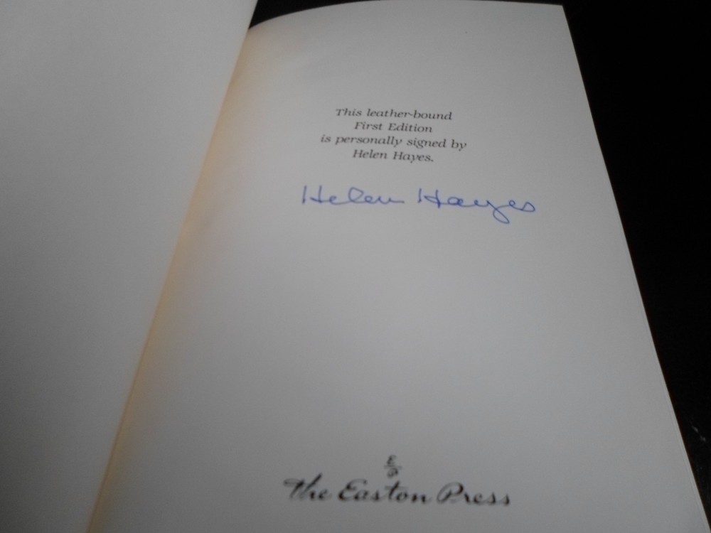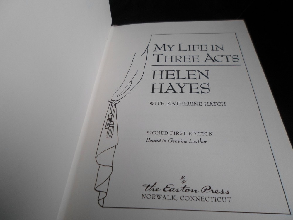 This is a leather bound signed first edition of Helen Hayes' best-selling memoir - "My Life In Three Acts", the fascinating story of the legendary American actress, also known as The First Lady of the American Theater. During a career that spanned several decades, Helen Hayes was one of the few that won all four major awards: Emmy, Grammy, Tony, and Oscar . The book is unread and in great condition. It is signed by the late actress on the limitation page. Easton Press books are the golden standard in the publishing industry, highly collectible and lasting generations. Easton Press Full Genuine Leather Dubbed Spine Accented Wit 22 kt. Real Gold Satin Ribbon Page Marker Distinctive Cover Design Gilded Page Edges To Protect Against Humidity High Quality Acid - Free paper Smyth-Sewn Pages Silk-Moire Endleaves I combine multiple items for savings on shipping charges. I ship worldwide. Please ask about international shipping charges and/or different shipping options. Please check out my other auctions for several rare signed books for sale. Thank you!