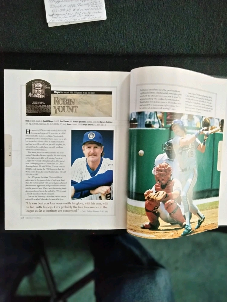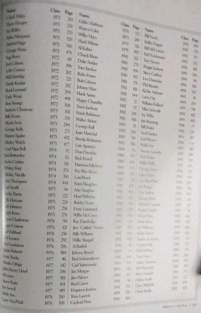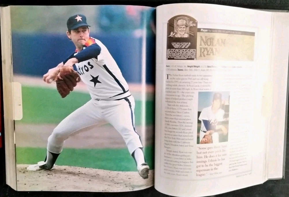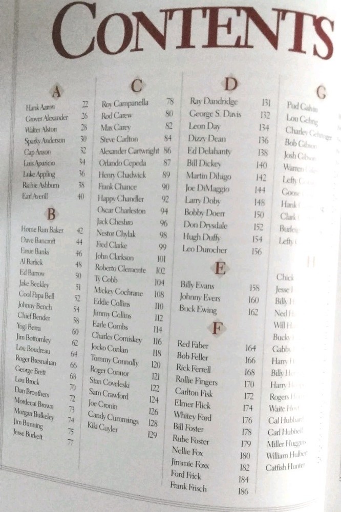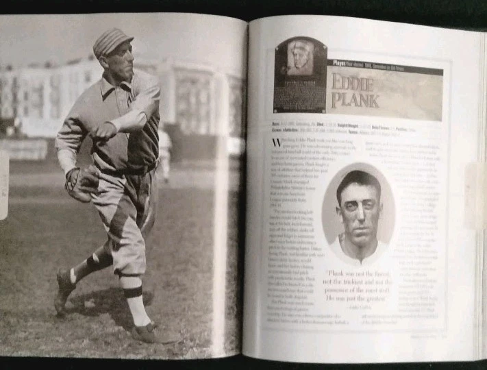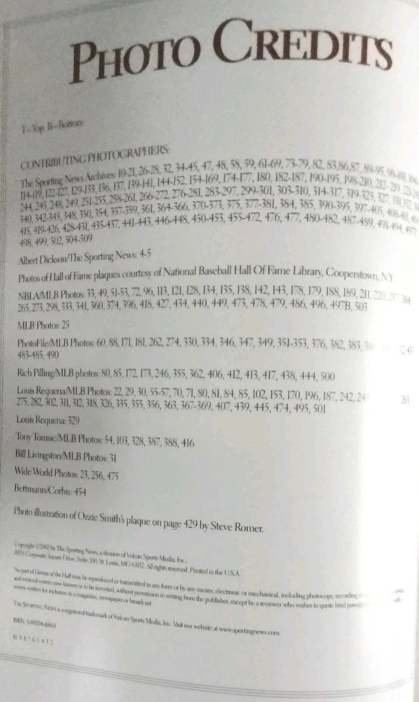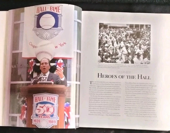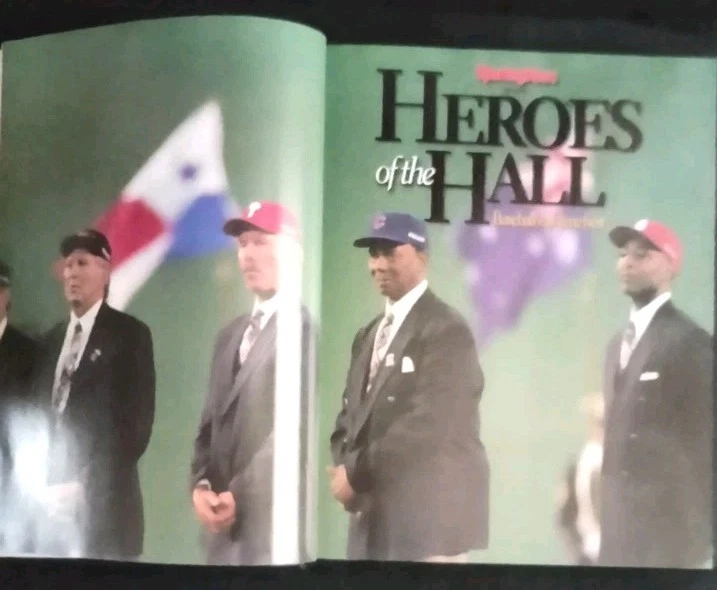 For the best information read the description and look at All the pictures please! This 512 pg. Hardcover Book is chock full of profiles and pictures of 254 of the Baseball Hall of Fame's best. Starting alphabetically with Hank Aaron continuing thru Robin Yount. Has at least 2 pgs. devoted to each player. Includes detailed pictures and information on each, including DOB, Stats, Teams, Positions played, and more! Covers all the Hall of Famer's from Ty Cobb-1936, through Ozzie Smith -2002. First printed pages are the opening picture shown titled "Sporting News Presents HEROES of the HALL Baseball's all-time best, then Photo Credits, Acknowledgements, Contents, and a FOREWORD by Ozzie Smith. Admittedly the most famous names get the full-page color photos and are also those who get more than 2 pgs. devoted to them. I've shown my allowed limit of 24 pictures, just a glimpse of all that this fabulous volume contains! If you're a fan of Sports, Baseball in particular, you don't want to miss the opportunity to add this volume to your collection! It is in Excellent condition, the only thing that keeps it from being NM are the first 4 blank pages. The 1st page had a number of finger smudges and while attempting to clean them off, which for the most part I was able to do, I got them too damp and they crinkled. I've shown this in the pics. Check out my feedback which indicates the degree of satisfaction my clients have in both the items they've bought, and the packaging and quickness of shipping! I will ship internationally if so requested, and you're willing to pay the shipping charges! Always open to Reasonable offers! Don't miss the many other great items I have listed including a wide variety of all kinds of other items! Thanks for looking and HAPPY HUNTING!