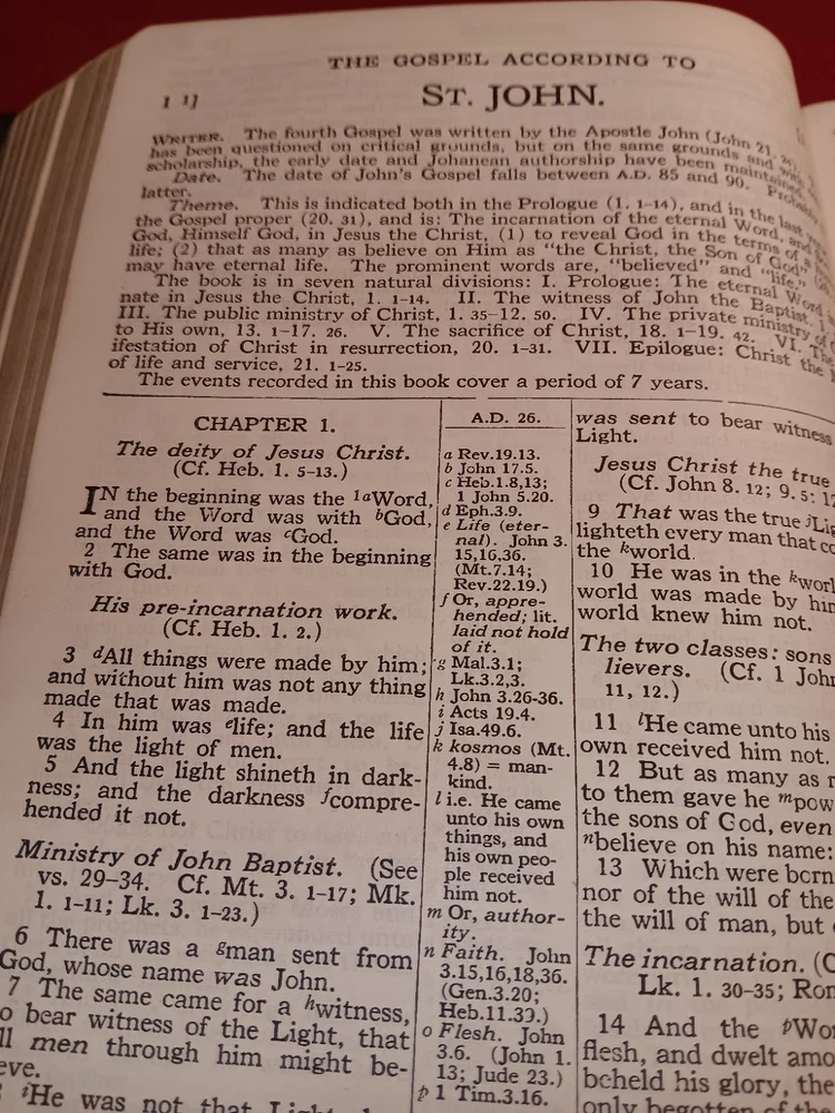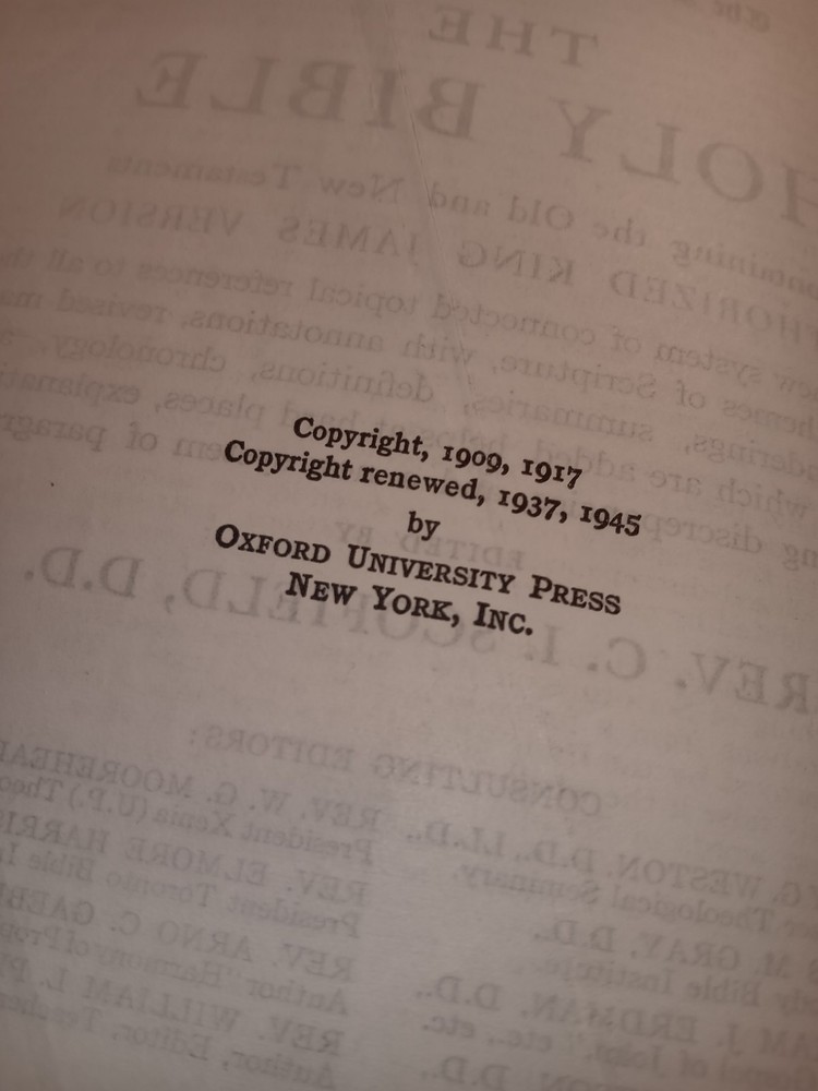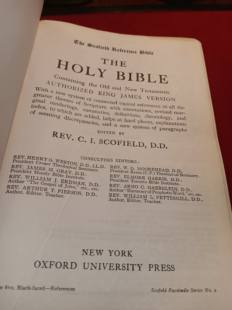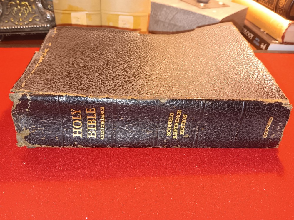 Vintage 1945 Scofield reference Bible, leather cover has wear & tear.