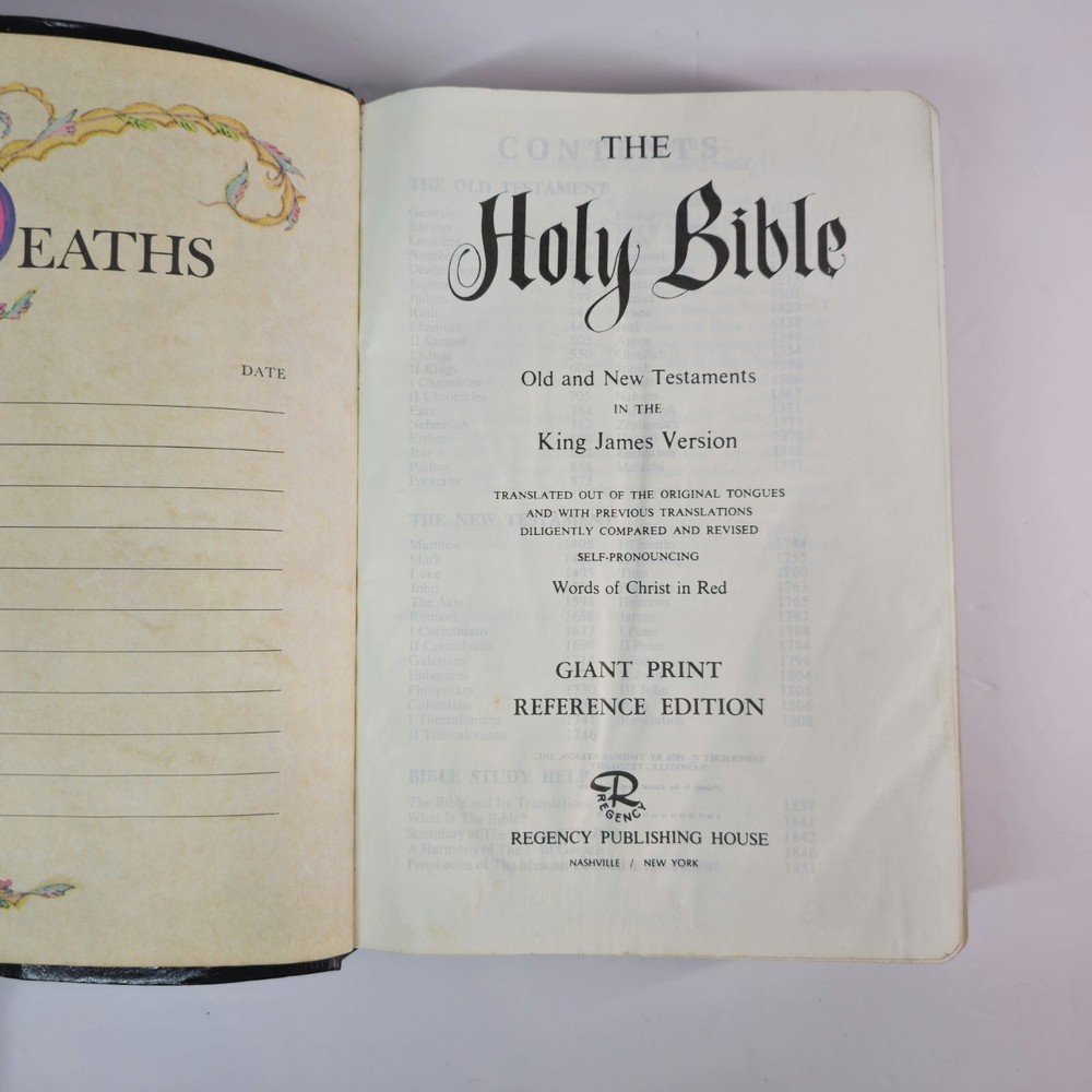 Holy Bible Giant Print Reference Edition. Old and New Testaments in the King James Version Words of Christ in Red Slight water damage in back....