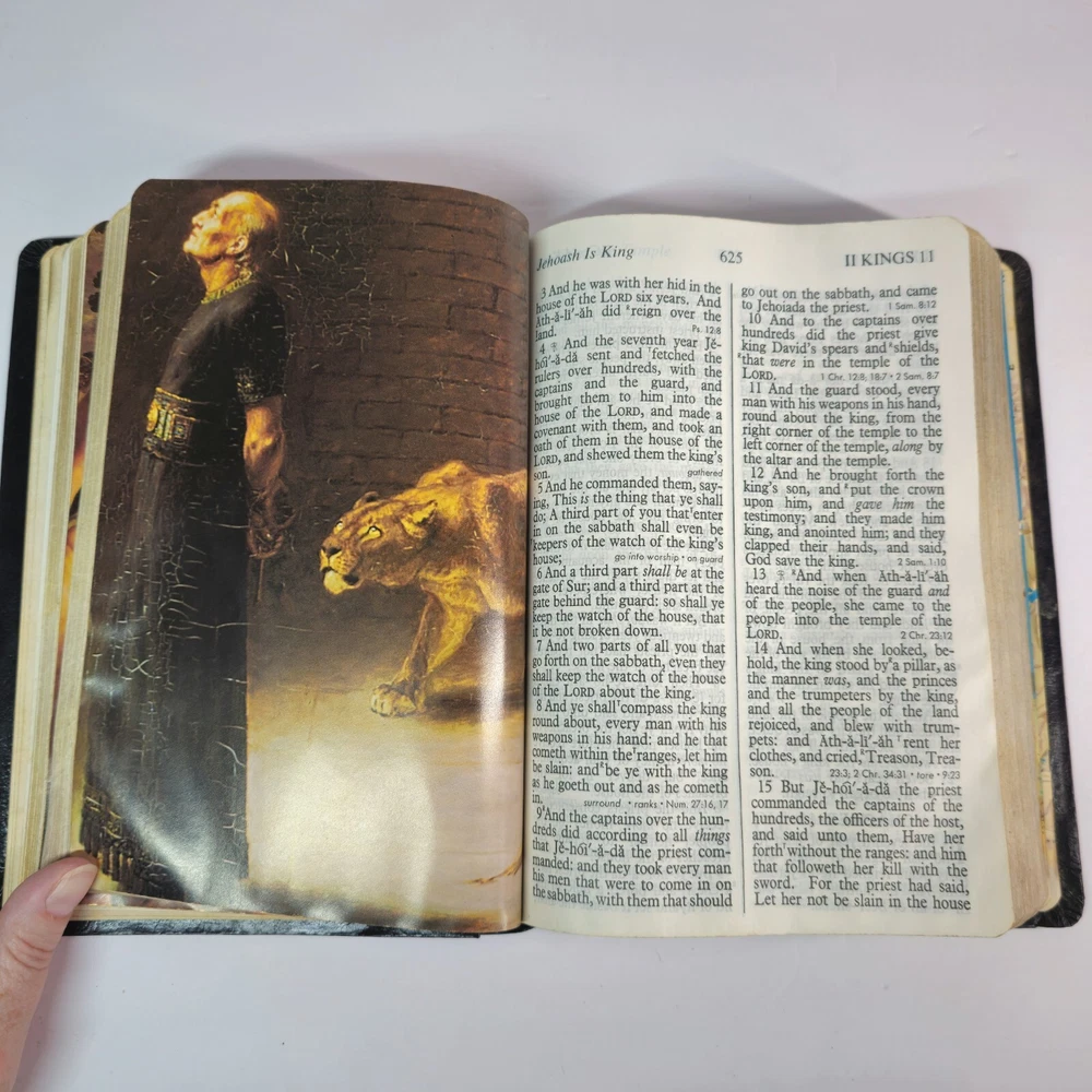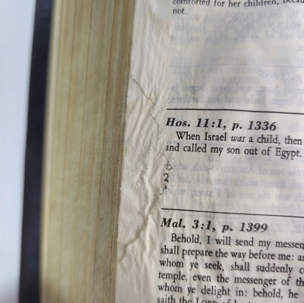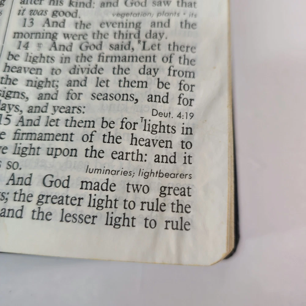 This Bible is amazing—giant print makes reading so easy, and the red-letter words of Christ stand out beautifully. The leather cover feels premium, and the built-in concordance is super helpful for study. Even with slight water damage, it’s in great condition for its age. A timeless treasure for anyone who loves the KJV!