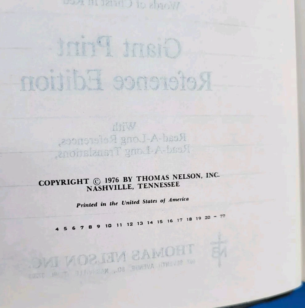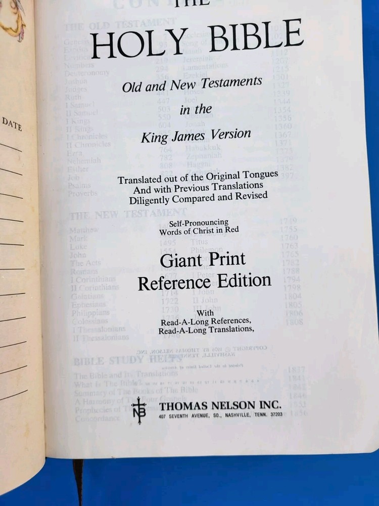 This KJV Giant Print Bible is a fantastic find! The bonded leather cover feels durable, and the large print makes reading easy. The presentation page is filled out, but the rest of the pages are clean with minimal markings, if any. The gilt edges add a nice touch, and the overall condition is great for its age. Perfect for daily use or study!