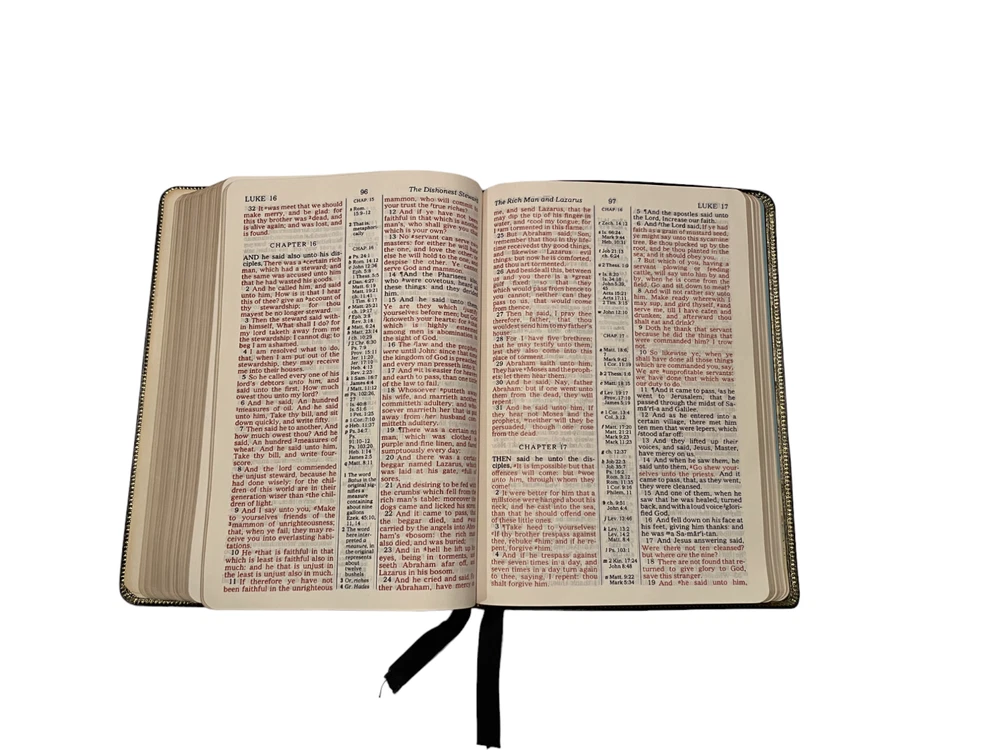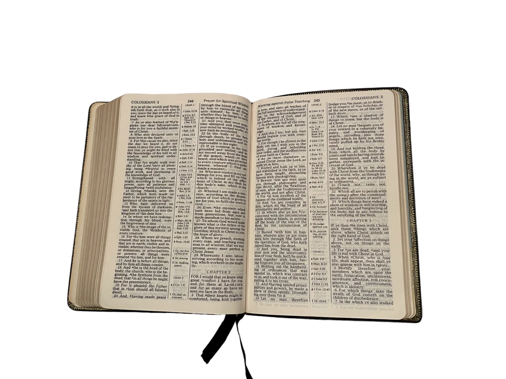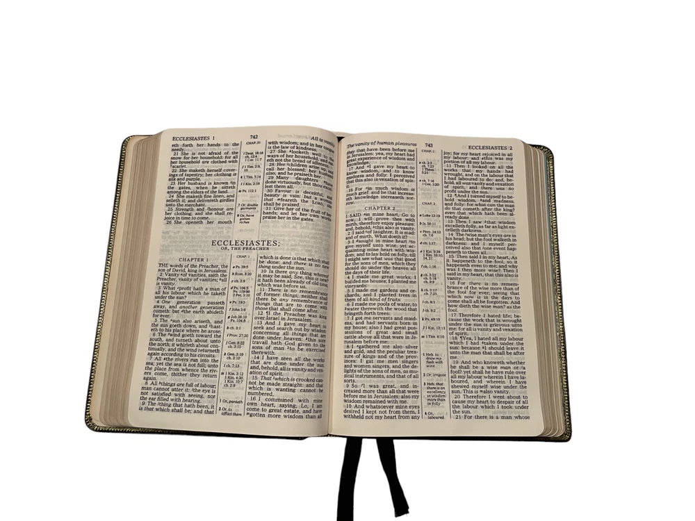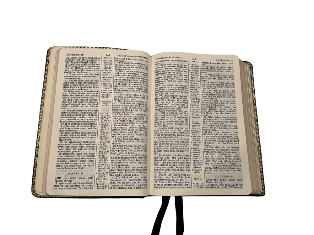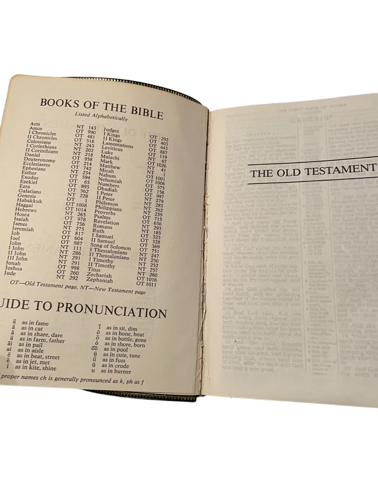 This is a KJV Kenneth Copeland Reference Edition Genuine Leather Red Letter HOLY BIBLE The first two pages are loose from the binding and there are minor scuffs on the leather cover. The presentation page is filled out. Otherwise, this is in very good condition.