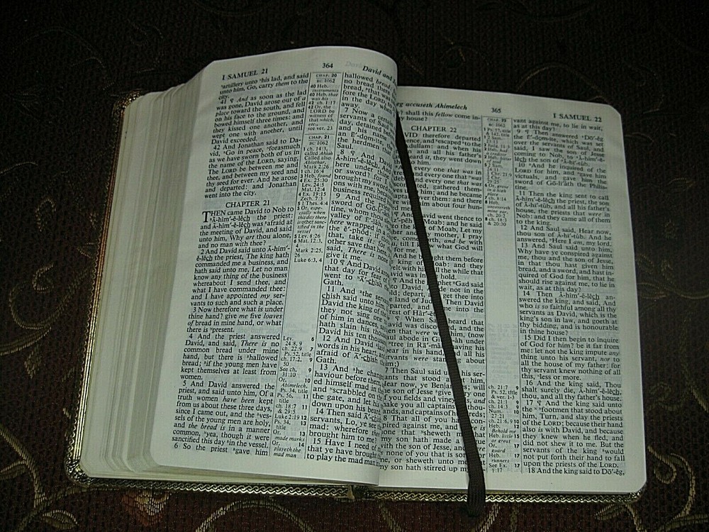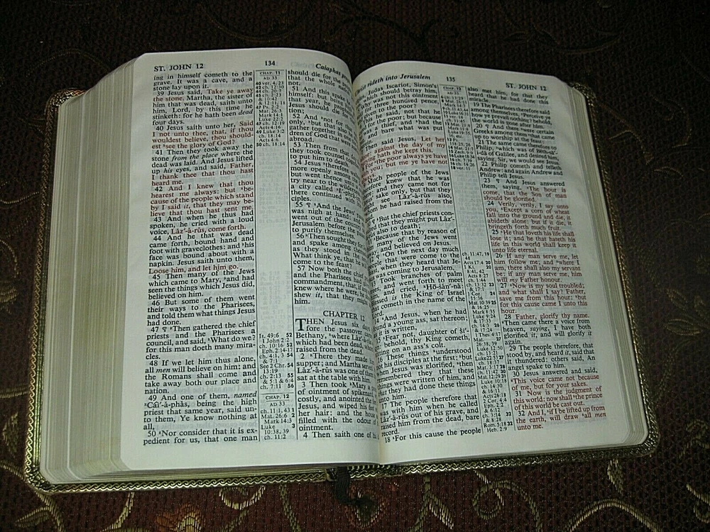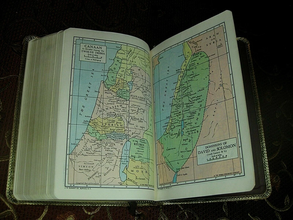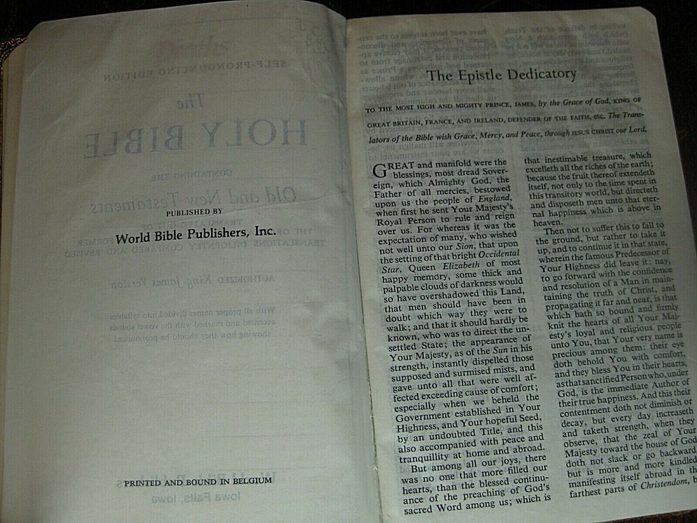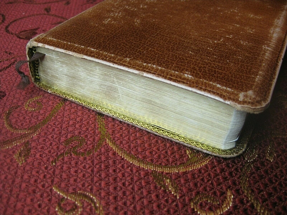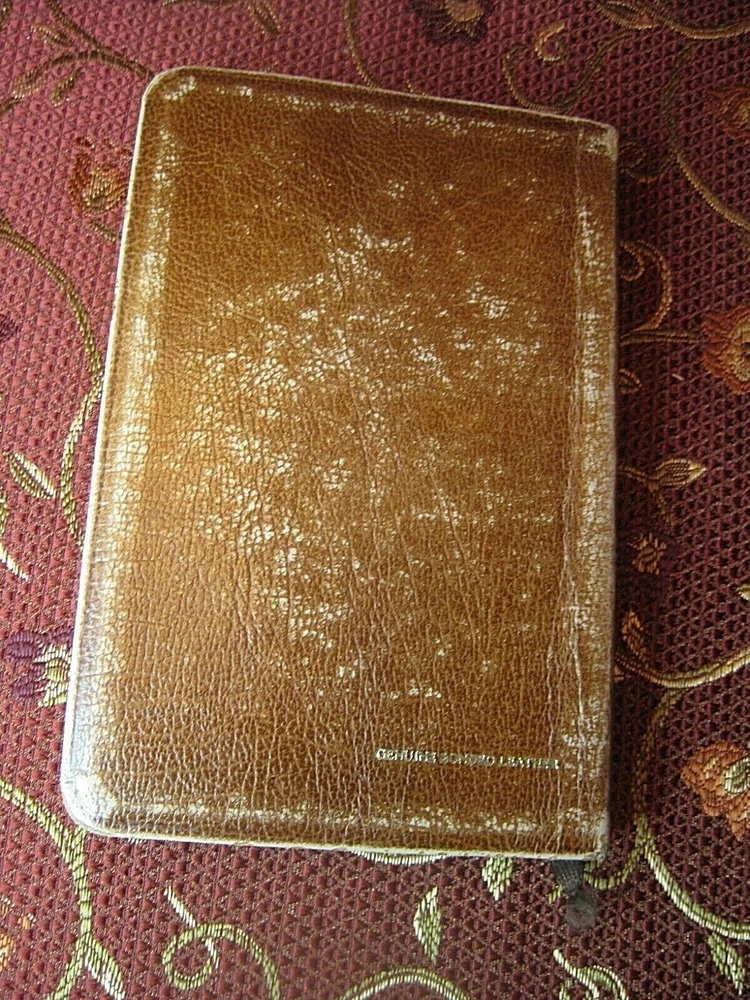 Being offered for your consideration is a Personal Size - Brown Bonded Leather copy of "HOLY BIBLE - King James Version " by Riverside . Bonded leather is very worn with edge and spine wear. Small amount of writing inside front end paper. (see photo 9) Neatly underlined Scriptures. (see photo example 8) No other writing or highlighting found. The pictures show the actual Bible that is being sold. Additional Information Published by Riverside (World) Riverside 86RL-BR Maps Center Column Reference Concordance Red Letter Maps Brown Bonded Leather One Brown Ribbon Bookmark (tattered) Gold Gilt Edge Paper (scuffs as pictured) 7-1/4 in. tall x 5 in. wide x 1 in. thick Smoke-free environment. Ships insured next business day, Monday - Friday International shipping and paym ents are not available . Please e-mail any questions before bidding as this item is Not returnable. Once you receive an invoice from eBay, please post payment within (2) days or item is subject to being relisted. Thank you and we look forward to doing business with you.