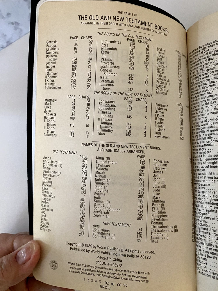 HOLY BIBLE King James Version / Red Letter 1989 Dictionary Study Helps Red Letter World #220DN Very Good Condition / No Marks or Writing This Holy Bible is an original 1989 copy with red lettering, dictionary, and study helps. The faux leather bound cover gives it an elegant appearance. It contains the complete King James Version (KJV) of the Bible, with additional study aids and references. The vintage Bible is published by WORLD Publishing Company and is in English. The book's genre is Bibles and its topic is the Bible itself. The country of origin is the United States. The book has been well-preserved and is in very good condition. SHIPPING - We ship FAST !! We live near the post office. If you buy it today, we ship it tomorrow. We do not charge handling fees. We pride ourselves in shipping it FAST! Your item will be packed safely. We use bubble wrap, and/or waterproof poly bags as appropriate. We're happy to combine shipping on multiple purchases to cut down the shipping cost. Local pick-up is also available if you want to cut the post office out of this deal. THANK YOU for checking out our eBay listing. If you have any questions about the item, let us know. We'll answer quickly. And if you have the free time, follow up with us. We'd love to know how your purchase is being put to use. FEEDBACK - We love feedback! Please help us out and provide feedback! We will definitely reciprocate and provide you with feedback as well! mTclosets - Check out our store for more listings! We are open to bundle deals!!
