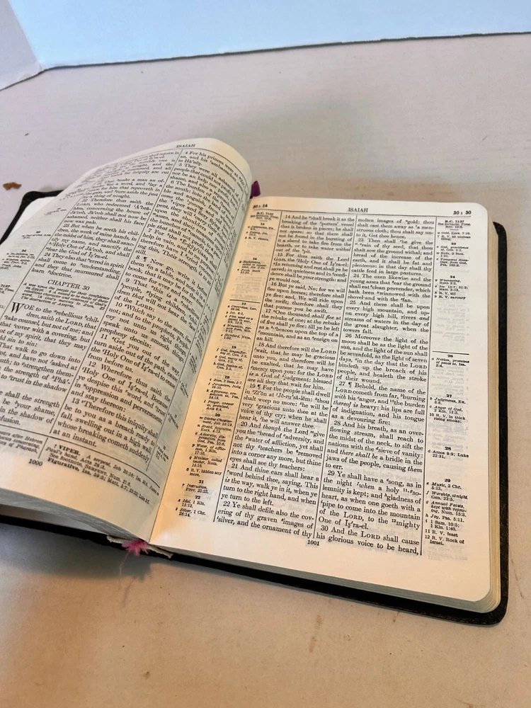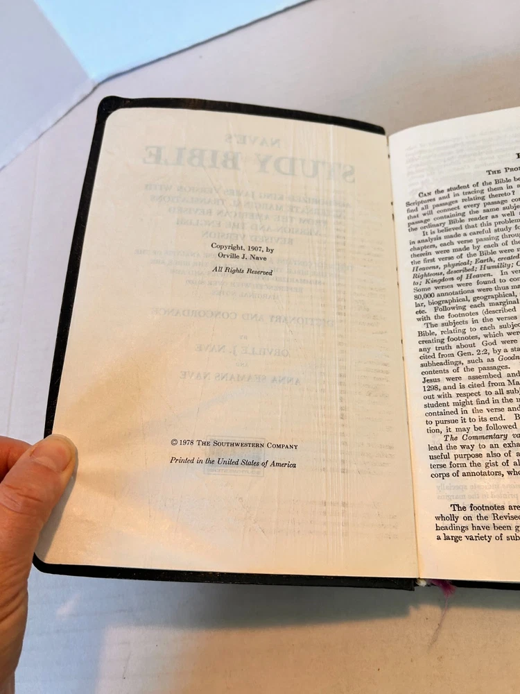 This vintage King James Bible is a fantastic find! The Nave’s Study references make it perfect for deep scripture study, and despite its age, it’s in solid condition—just minor wear and a small spine tear. No markings inside, so it’s clean and ready for new insights. A great value for a classic study Bible!