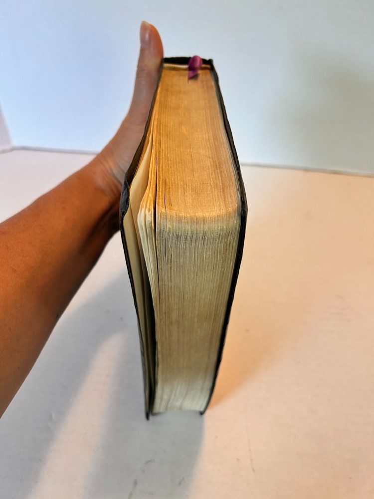 Pre-owned Bible in good condition with normal wear and tear for its age. A small tear is present along the spine (see pics). No highlighting or writing noted....