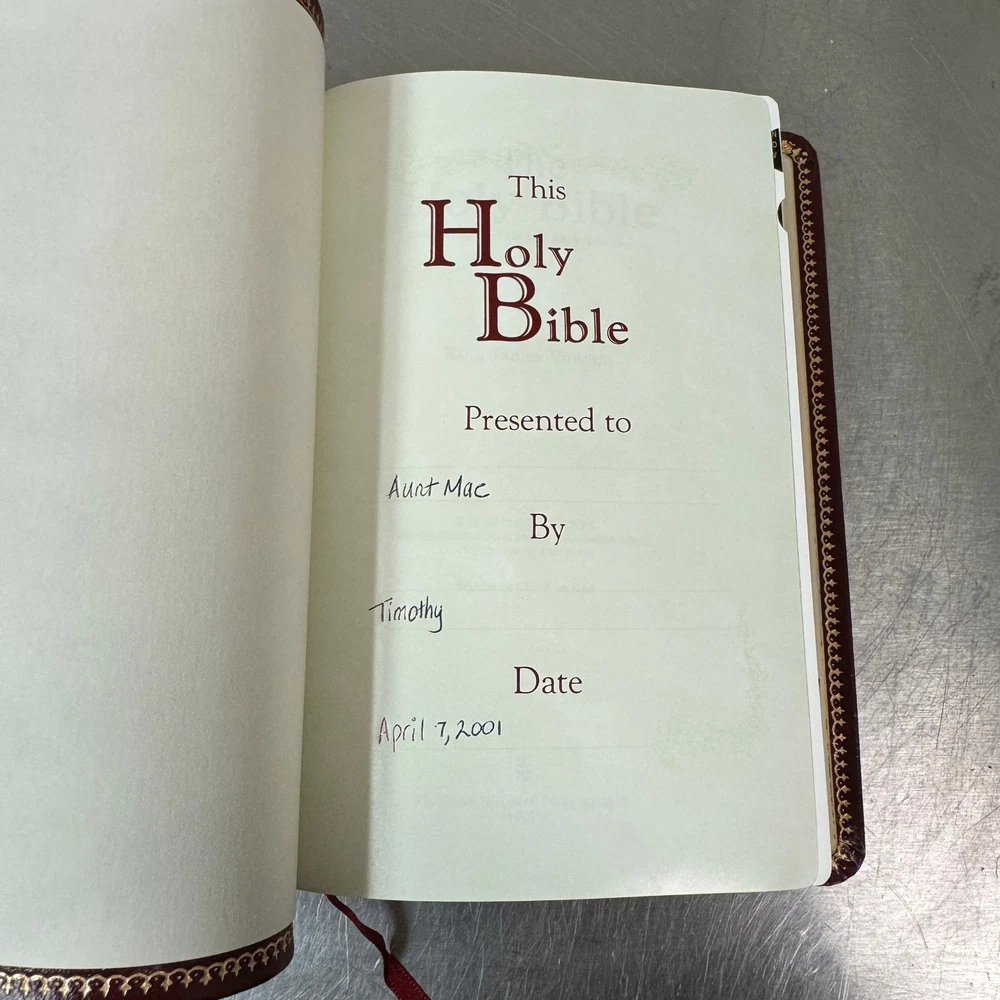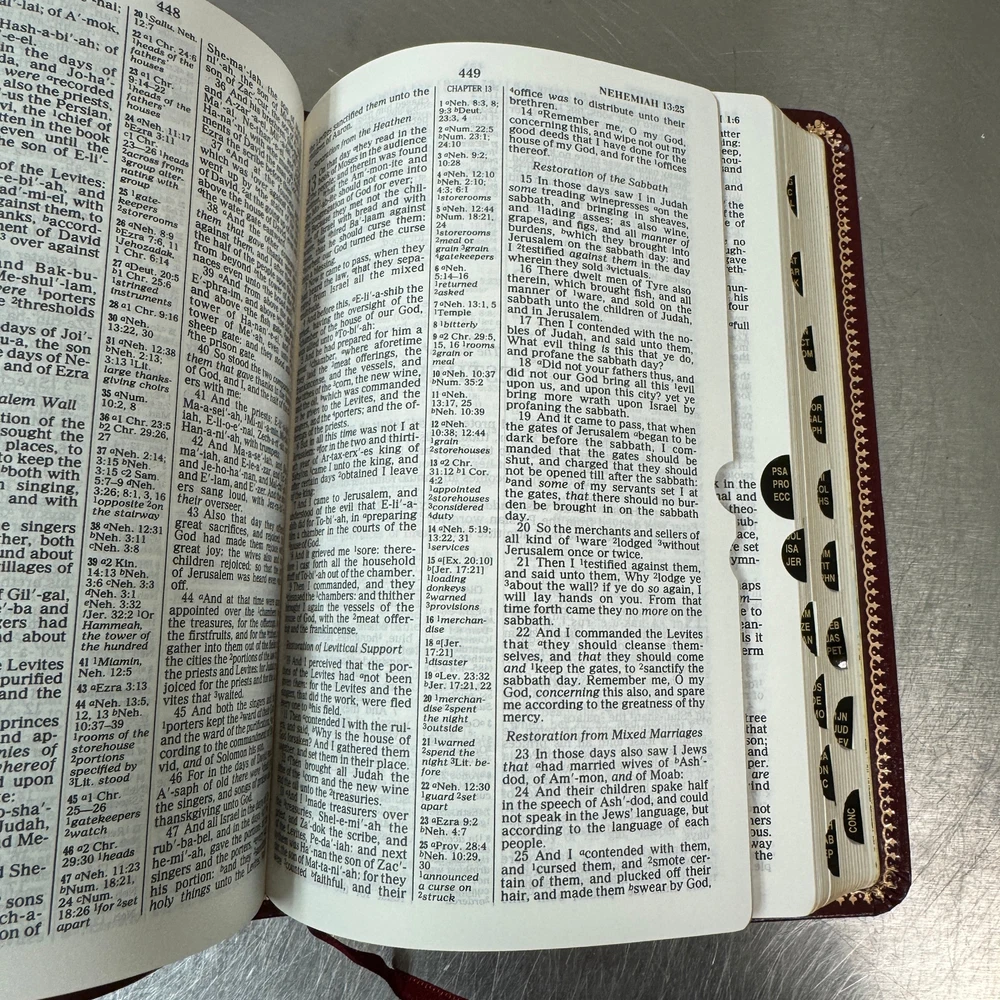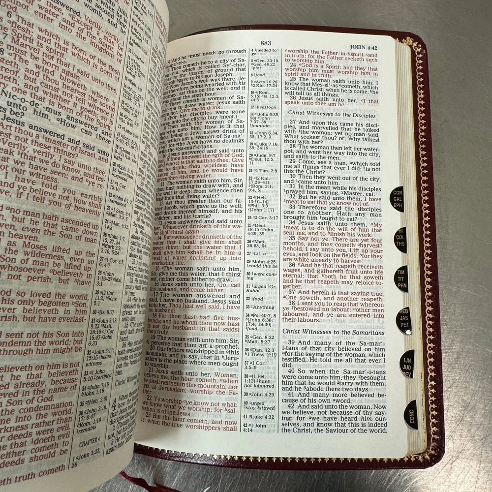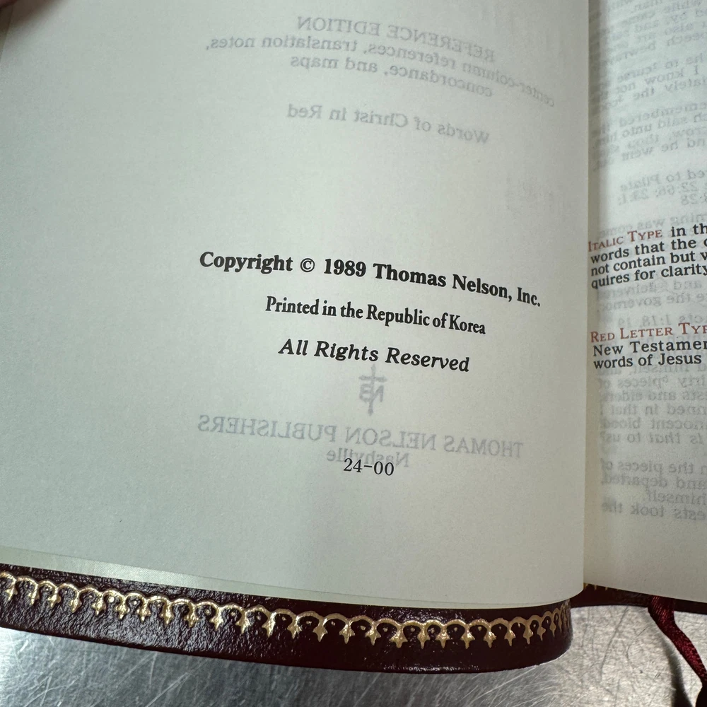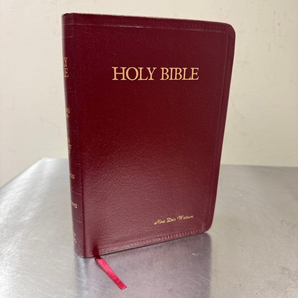 HOLY BIBLE King James Version Burgundy Bonded Leather Reference NELSON 2005BG HOLY BIBLE King James Version Burgundy Bonded Leather Reference NELSON 2005BG Title: HOLY BIBLE King James Version Burgundy Bonded Leather Reference NELSON 2005BG Publisher: Thomas Nelson Condition Notes: Some light wear. Previous owner's name written on the presentation page. Previous owner's name stamped on the cover. Listing and template services provided by inkFrog