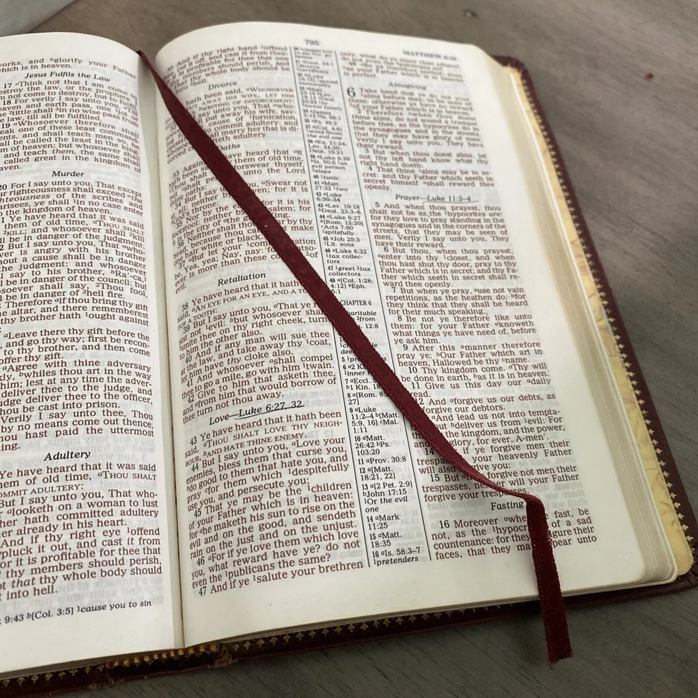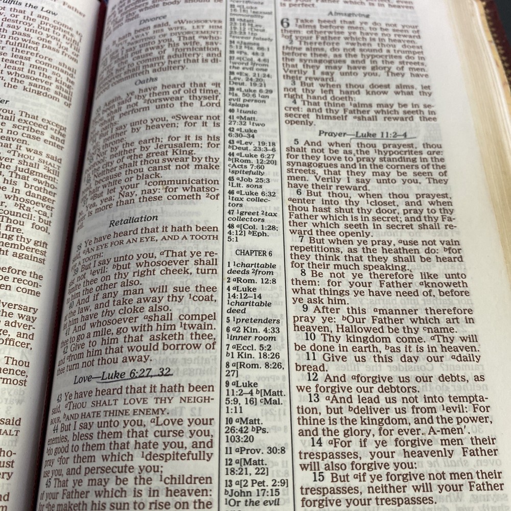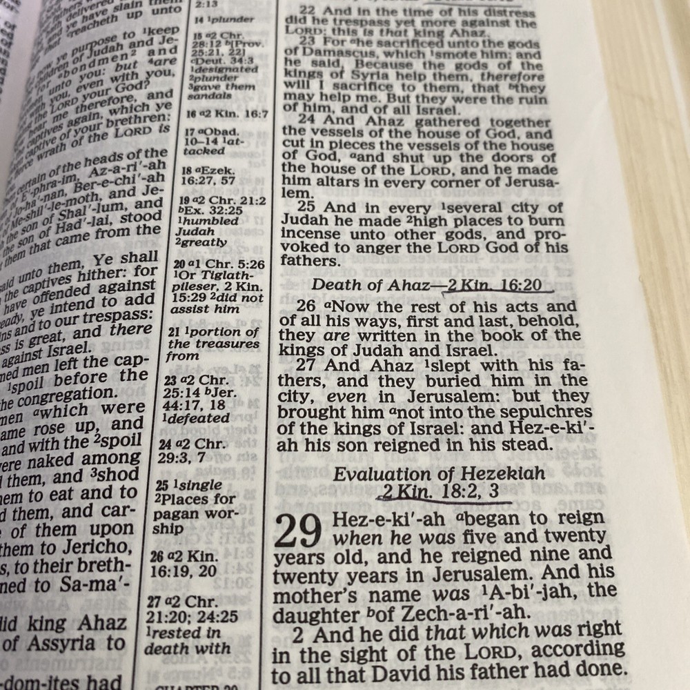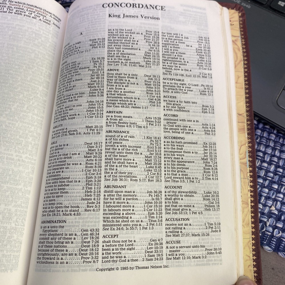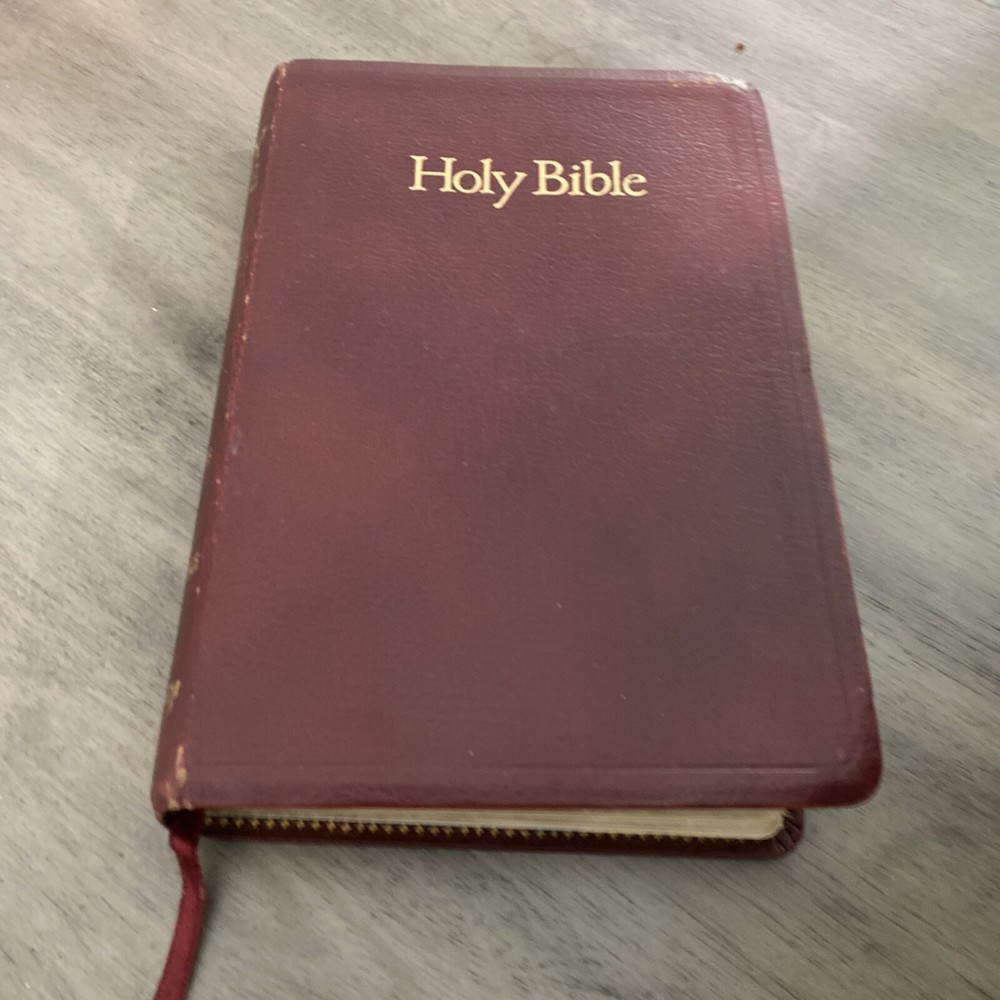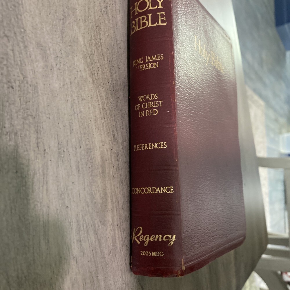 HOLY BIBLE KJV, REFERENCE EDITION, Burgundy Leather Regency 2005. Has an attached fabric bookmark Includes concordance at the back of the Bible Name written on inside cover - see picture There is some underlined books and acts - see picture