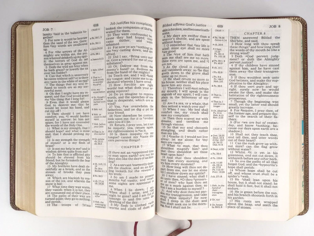 This Bible was better than "as described"! Upon receiving it, I discovered that the binding is genuine leather. The price was very good; this is a brand new Bible. It was well-protected for shipping. I will keep an eye on this great seller's products from time-to-time.