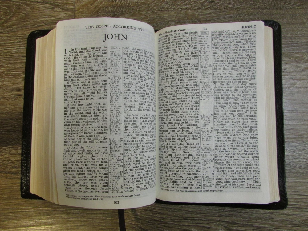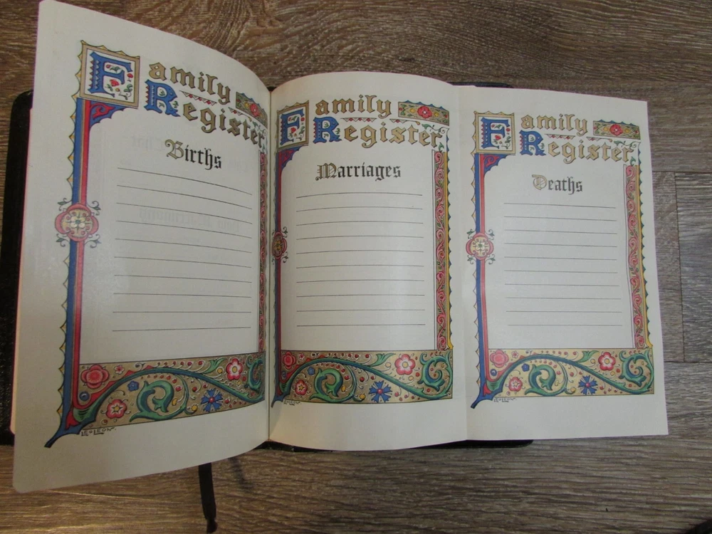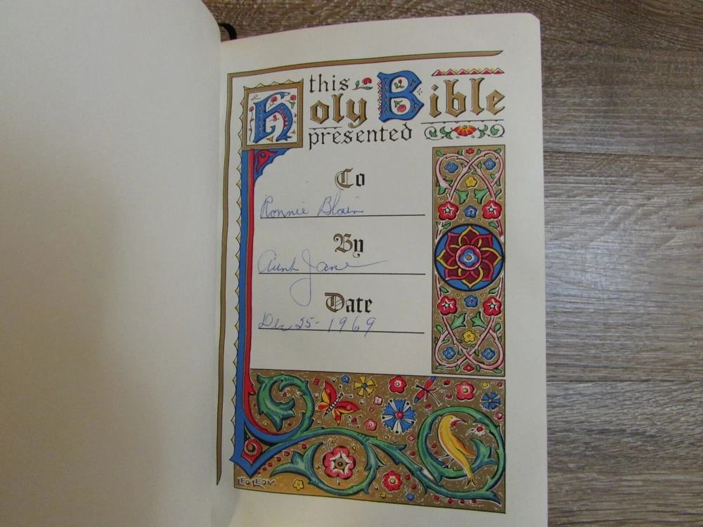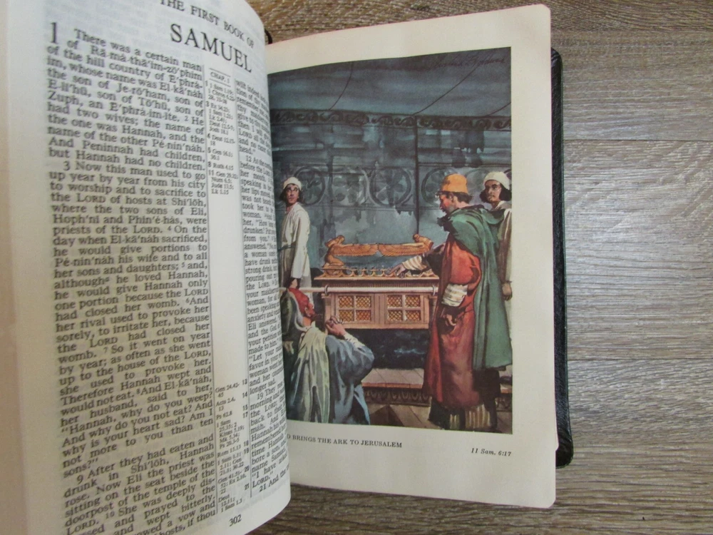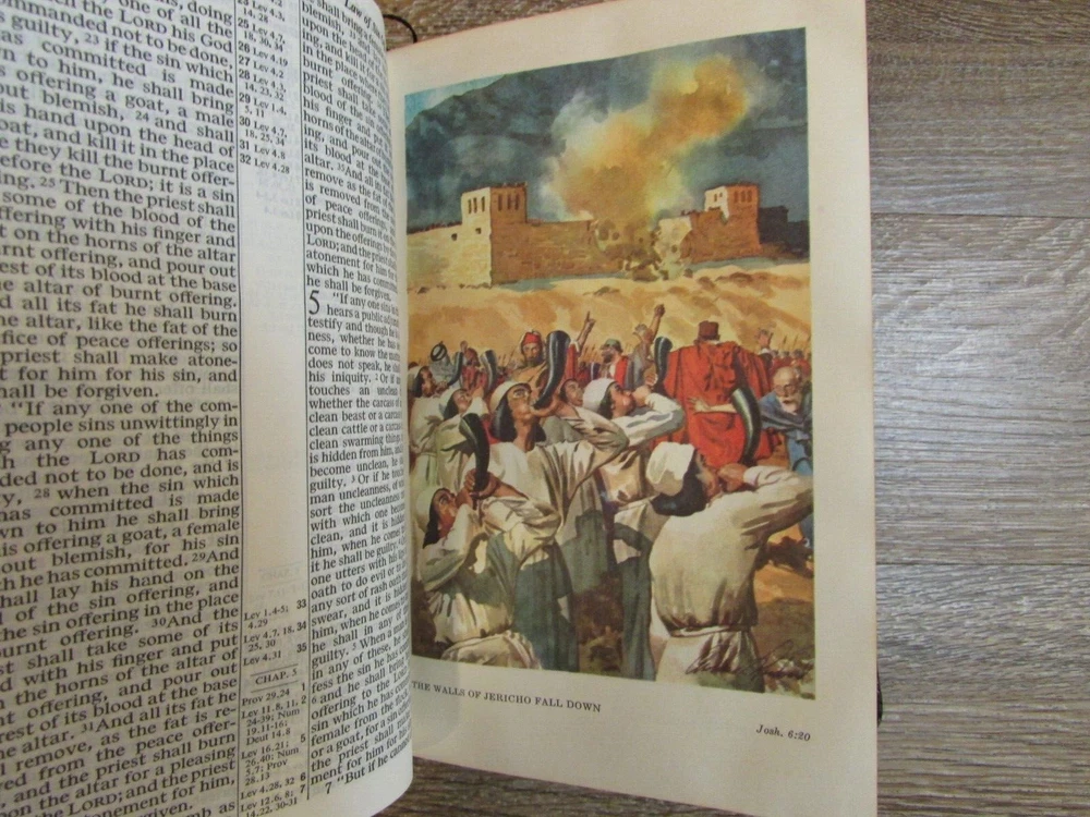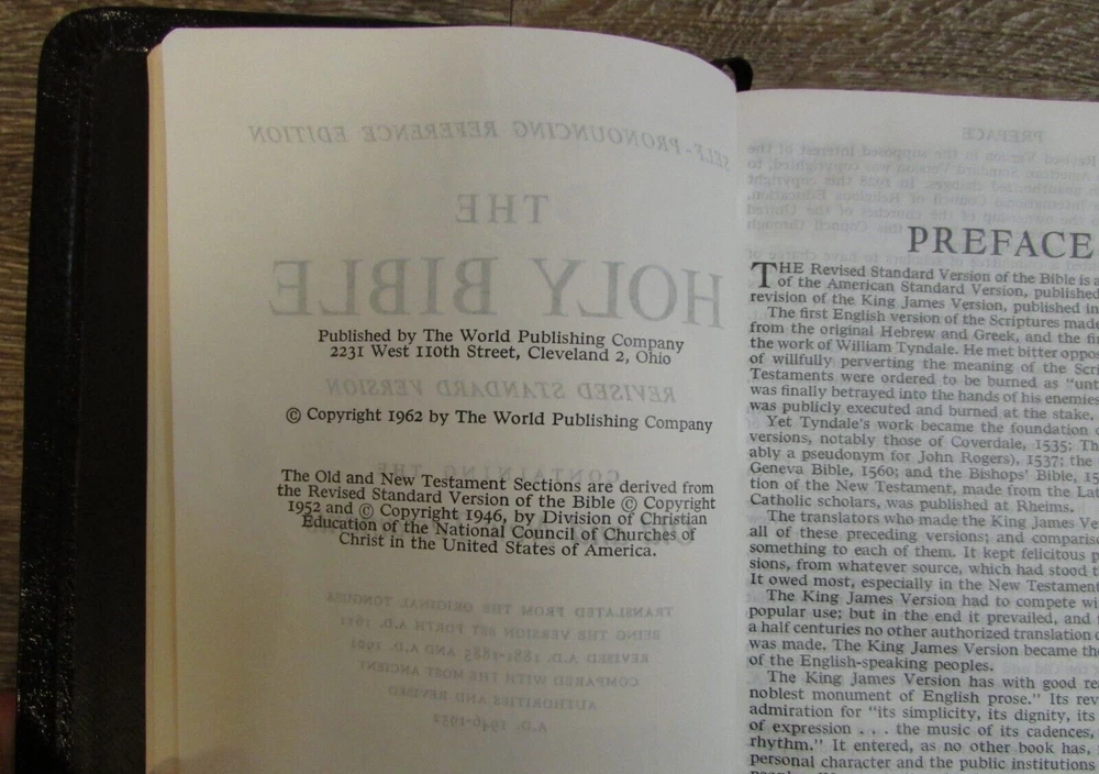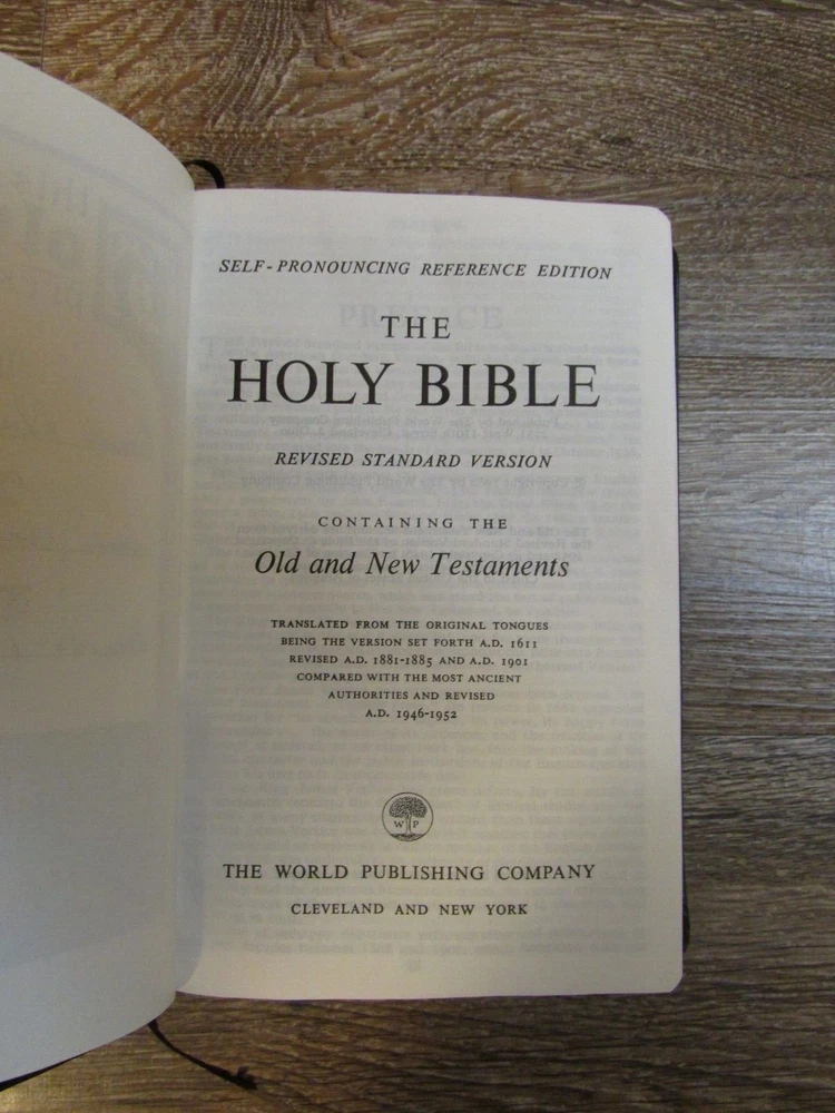 HOLY BIBLE Revised Standard Version, Concordance, References, Genuine Leather Cover, World Pub. 1962. Great shape for age: no torn pages noted, binding in great shape. Bottom is slightly sloped from storage, has dedication writing on inside cover - see last photos. Approximate Measurements: 7.5" x 5.25" x 1" Use the “Seller's Other Items” link above to view our store for more Bibles and Books. If there are any concerns with your transaction we request that you make contact with us prior to contacting Ebay giving us the opportunity to resolve any issues. Actual color may be slightly different due to lighting. We have inspected the item(s) to the best of our ability. If we notice any defects we will photograph them and bring them to your attention. If you notice any defects that we have missed please notify us as soon as possible. We do accept returns, however the buyer is responsible for cost of return shipping. We ship USPS or UPS with delivery confirmation after funds are received. All items are carefully packaged. We will combine smaller/lighter items. We hope you enjoy your experience on Ebay and please ask any questions. Thank you for shopping with Vedals1865.